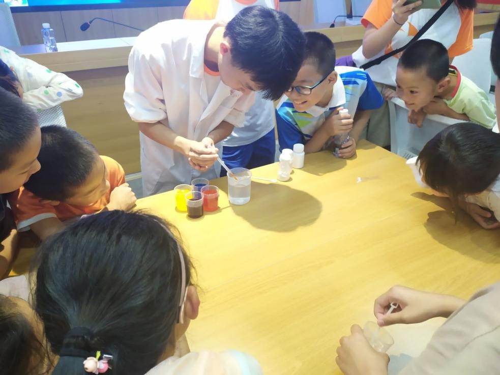 下午的趣味化学实验课由实验组的三位老师主讲,为同学们带来了三个奇妙的化学实验:色彩爆发、缤纷牛奶、珍珠雨。老师和同学一起动手做实验,每一位同学都切身感受到化学实验的魅力。