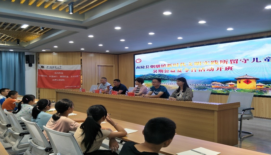 7月10日上午9时许,隆重的留守儿童暑期公益夏令营活动开班仪式正式举行。仪式开始,由烟墩镇党委副书记、镇长汪浩为开班仪式致辞,汪浩镇长表达了对本次夏令营活动的殷切期望,祝愿每一位留守儿童都能在这短暂的十天里收获满满的知识。仪式最后由中共南陵县委宣传部副部长王波宣布本次留守儿童公益夏令营正式开班。