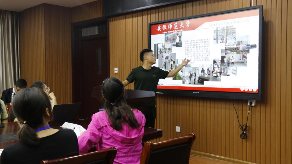 精心组织了34支实践团队奔赴江淮大地积极投身社会实践、服务基层。此次评比会中,34支团队被分为“五四先锋团”、“专业见习团”、“环保宣讲团”、“爱心服务团”分组同时进行汇报,每个团队用四分钟的时间将一群人共同奋斗的难忘历程以PPT汇报的形式娓娓道来。汇报过程中各团队主题明确、逻辑清晰。生动的照片、真实的数据、一篇篇在媒体上发表的新闻稿都是实践故事汇报者传递出的最诚挚的声音。
