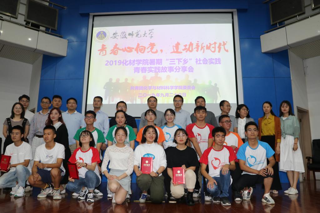 一直高度重视第三课堂实践育人活动,充分发挥“三全育人”职能,领导班子、专业指导老师、辅导员全程参与指导,为学生打造深化理论、展示自我、接触社会平台。494名化材学子圆满完成2019年暑期社会实践活动,他们将继续肩负青年大学生的责任、使命,为实现中华民族伟大复兴的中国梦而不懈奋斗!