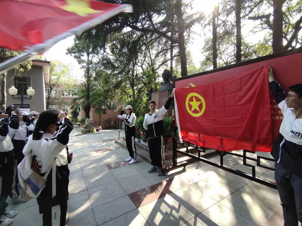 “读史可明鉴,知古可鉴今”。 2019年正值新中国成立七十周年,为了缅怀在革命战争中英勇牺牲的革命烈士,学习革命先辈们优秀的革命精神和崇高品格,各班级以“我与祖国共奋进”为主题,积极组织班级成员前往了烈士陵园、王稼祥纪念园等红色教育基地,弘扬爱国主义精神,强化团员责任意识。参观结束后,各班级将全体共青团员召集在一起,以良好的精神面貌在团旗下隆重宣誓,并由辅导员为团员们颁发了“三证”,富有仪式感的现场教育让全体同学更加铭记入团誓言,让团歌更加嘹亮,让团徽栩栩生辉。