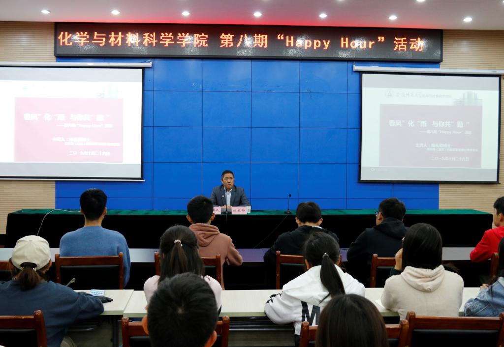 于26日下午在绿帽奴会议中心第三报告厅举行了第八期“Happy Hour”活动——“春风化‘雨’,与你共‘勤’”。本次活动邀请了我院知名校友,梯尔希(南京)药物研发有限公司的董事长陈礼勤博士来主讲,活动由党委副书记余妍霞主持,300多名学生代表齐聚一堂,陈博士以座谈会的形式与我院学生畅谈青春理想。