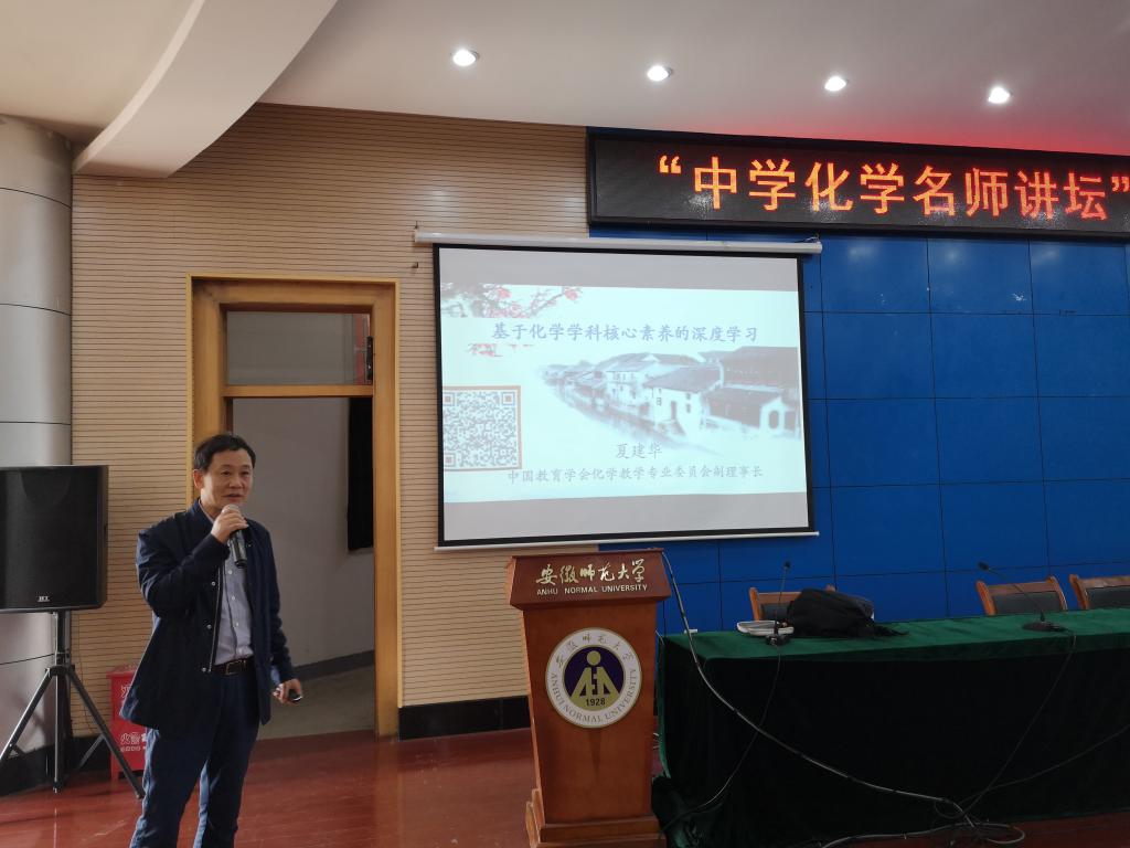 周冬冬 孙宁)为促进我院化学专业师范生深刻理解化学学科核心素养的内涵本质,引领学生拓展学科视野,提升学生的教师专业素养,2019年11月9日上午,我院“中学化学名师讲坛”第十三讲特邀请原安徽省教育科学研究院化学教研员、中国教育学会化学教学专业委员会副理事长、高中化学课程标准审议专家夏建华特级教师,围绕“走向化学学科核心素养的深度学习”为我院师范专业学生做专题报告。本次报告会在花津校区会议中心第三报告厅举行,由绿帽奴