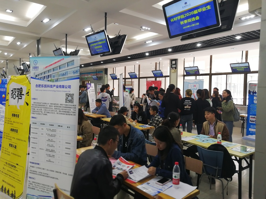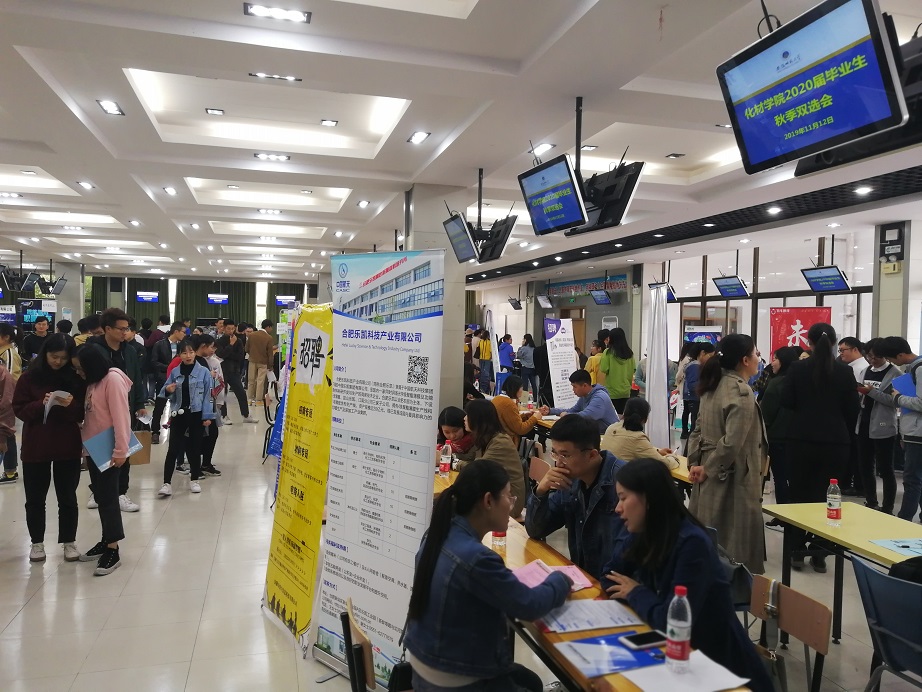 2020届毕业生秋季校园双选会在大学生活动中心二楼招聘大厅举行。参加双选会的46家用人单位提供生物医药、化学化工、材料科学、教育教学和综合岗位类等700余个招聘岗位。合肥新站高新区人社局作为绿帽奴