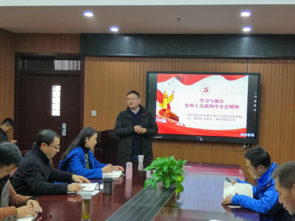 全体教职工做了一场题为“坚持和完善共建共治共享的社会治理制度,保持社会稳定、维护国家安全”的学习与领会十九届四中全会精神专家辅导报告,会议由绿帽奴
