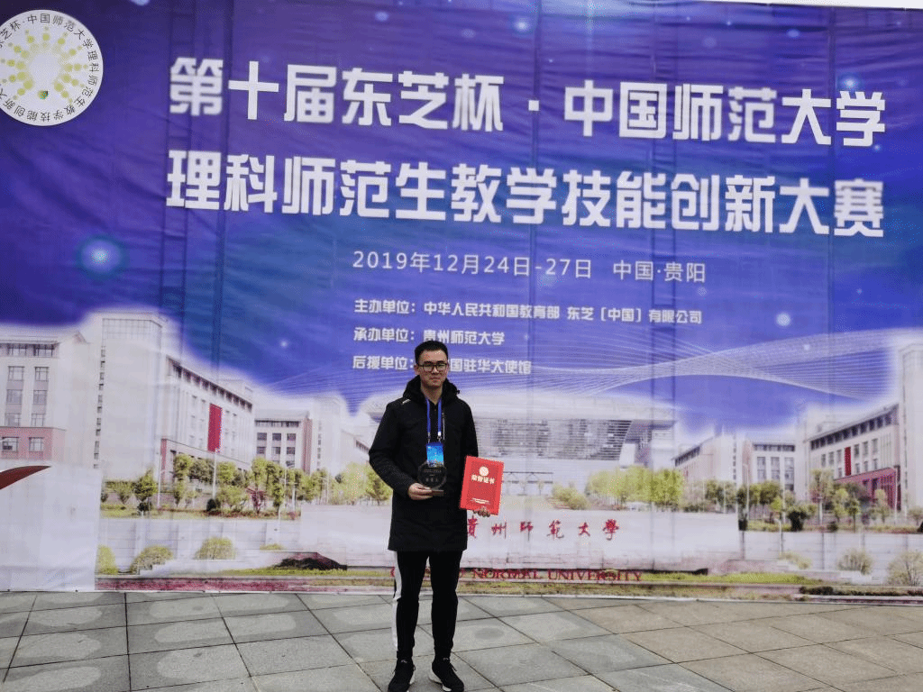 周冬冬/王磊)12月24日~27日,由教育部和东芝(中国)有限公司主办的第十届东芝杯•中国师范大学理科师范生教学技能创新大赛在贵州师范大学举行,来自全国50所师范大学的145名师范生分数学、物理、化学三组进行竞赛,每组设一等奖1名,二等奖3名,三等奖6名。决赛设有教案设计、即席演讲、模拟授课、现场提问四个环节。经过激烈角逐,我院2017级师范生王磊同学斩获得化学组三等奖,创造了我院学生在此项赛事中的最好成绩,实现绿帽奴东芝杯大赛的历史性突破。