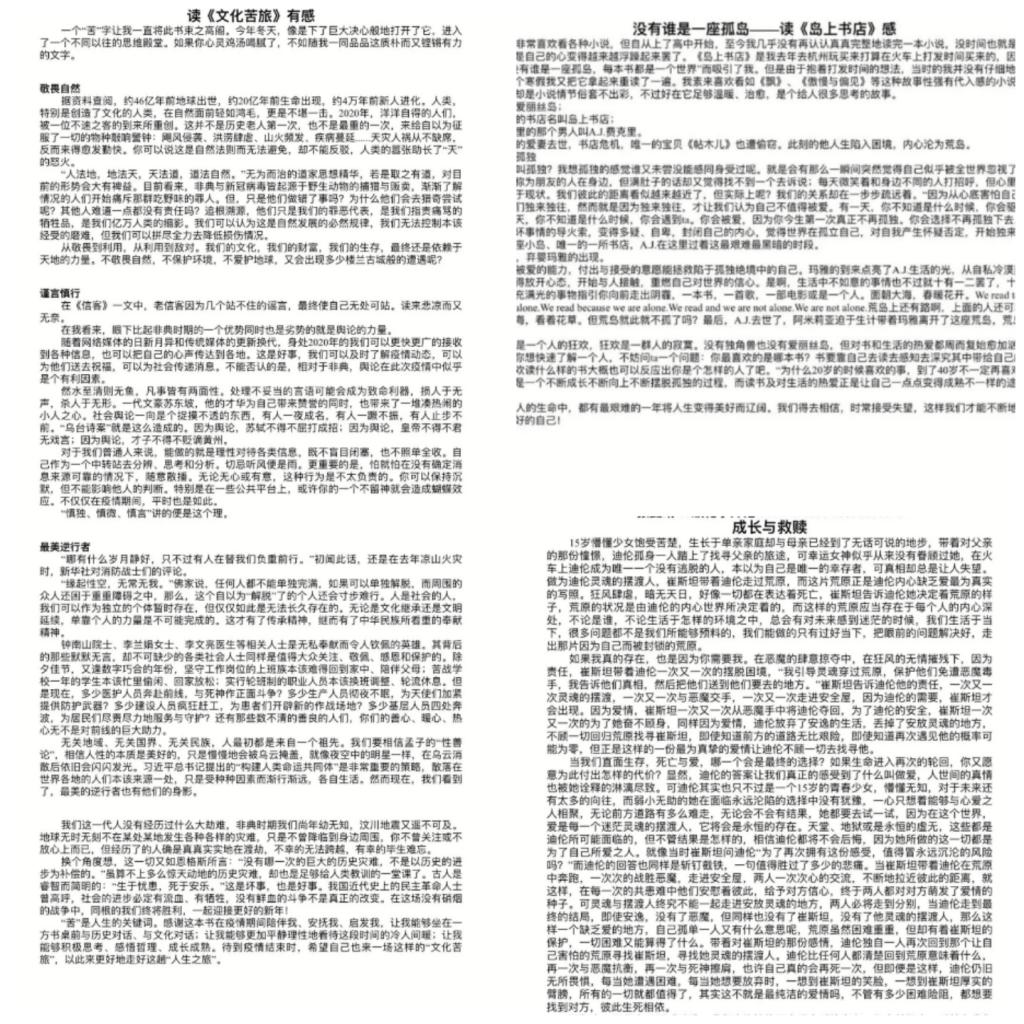 为全力做好疫情防控期间教育教学工作,引导学生在疫情防控期间多读书、读好书、读经典,特开展“品经典,传文明”经典书籍阅读暨读书创作活动,培养学生浓厚的阅读兴趣和良好的阅读习惯,营造校园读书氛围。