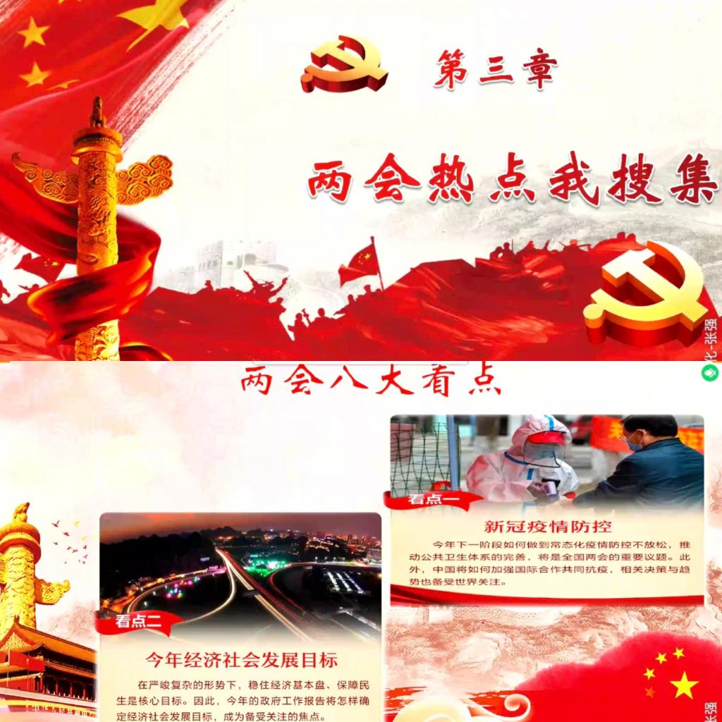 团委的组织安排下,各团支部以主题团课、知识竞赛、在线研讨、专题思政课等多样化的学习方式,从不同的角度开展深入学习。有的班级聚焦两会热点和焦点话语,“坚持把人民生命安全和身体健康放在第一位”,这样的话语就像一股暖流深入学生心中;稳就业保民生,让青年大学生信心倍增,干劲更足;面对突出其来的新冠疫情,中国的防控举措取得了重要战略成果,青年大学生们深切感受到中国特色社会主义的制度优势。有的班级组织同学收听收看开闭幕式,帮助同学们全面了解两会精神内涵;有的班级以知识竞赛的方式梳理两会学习重点,感受中国人民的英雄壮举和中国特色社会主义的伟大力量。