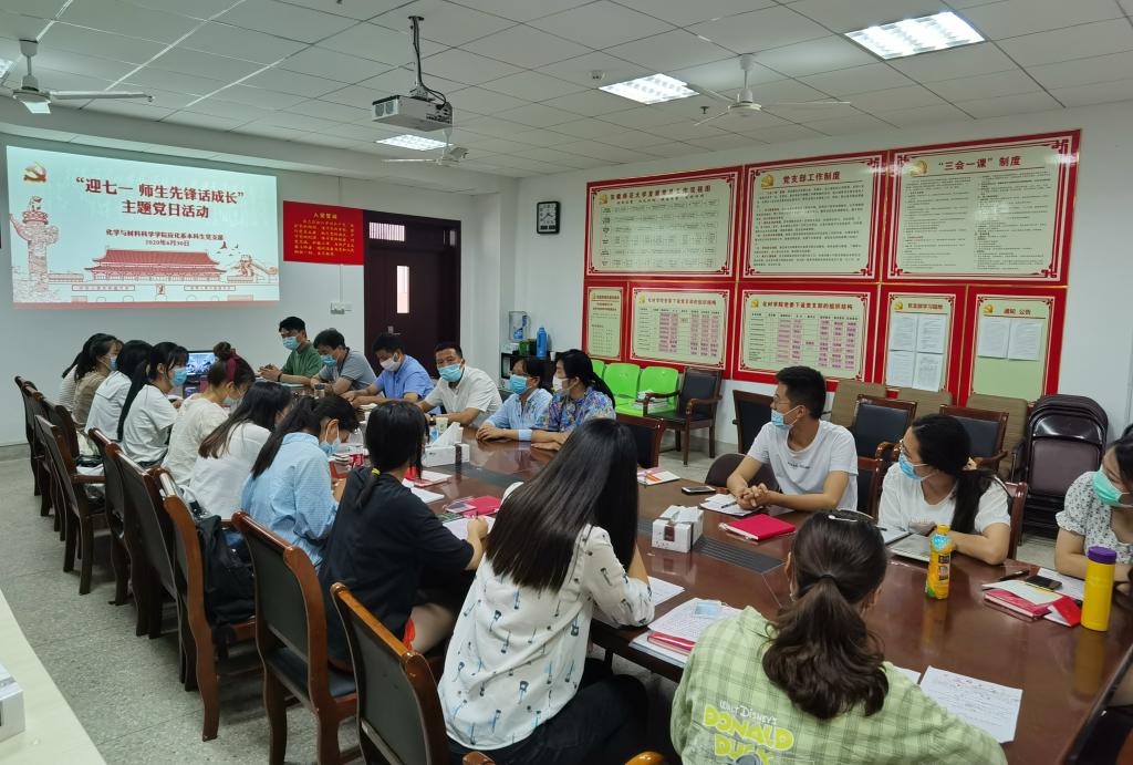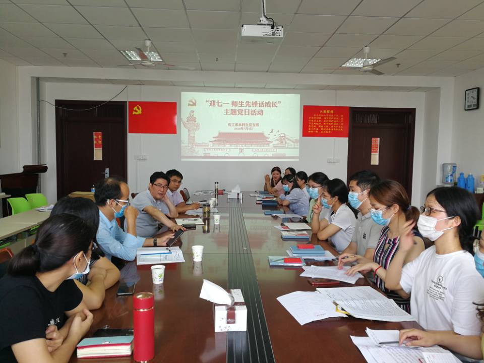 化学、材化、应化和化工的教工党支部党员老师分别参加四个专业的本科生党支部的主题党日活动。活动过程中,师生围绕绿帽奴