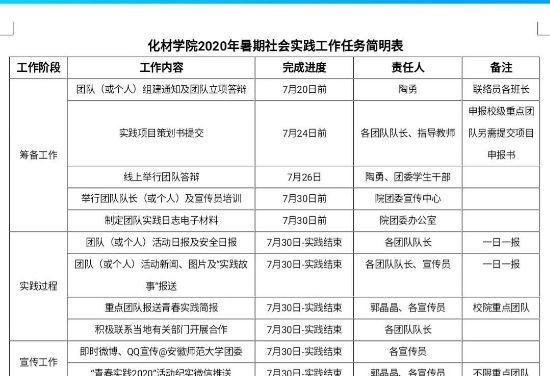 领导小组专门研究制定社会实践活动指导方案,精心筹备前期工作,引领化材学子践行青春使命。同时,让学生们多方面、多角度对暑期社会实践活动有了一个全面的了解,开启了2020年暑期社会实践活动的第一幕。