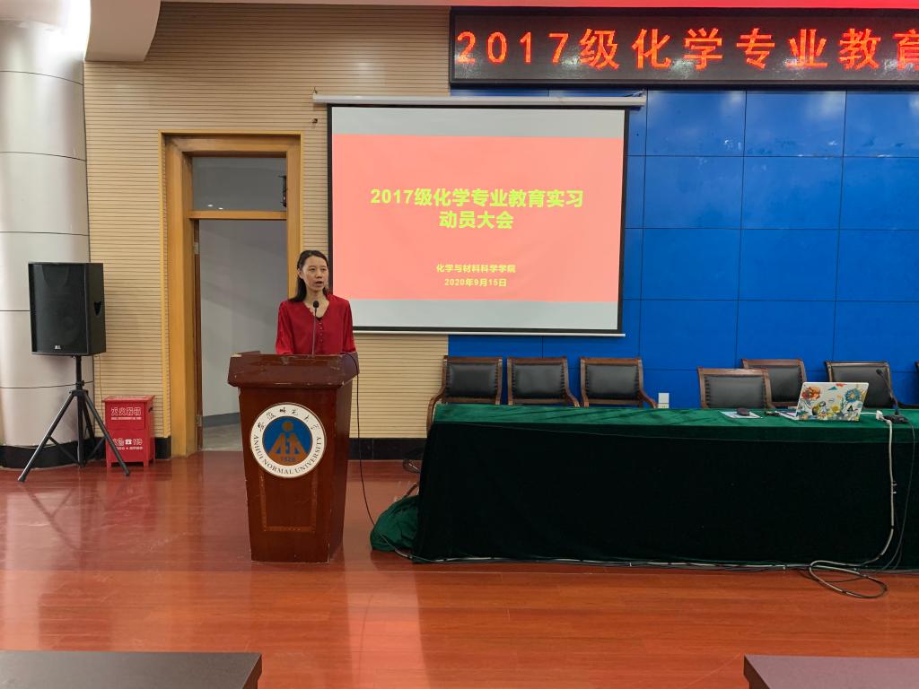 党委副书记余妍霞、教育实习指导教师以及2017级化学专业全体师范生。会议由化学系副主任孙影主持。