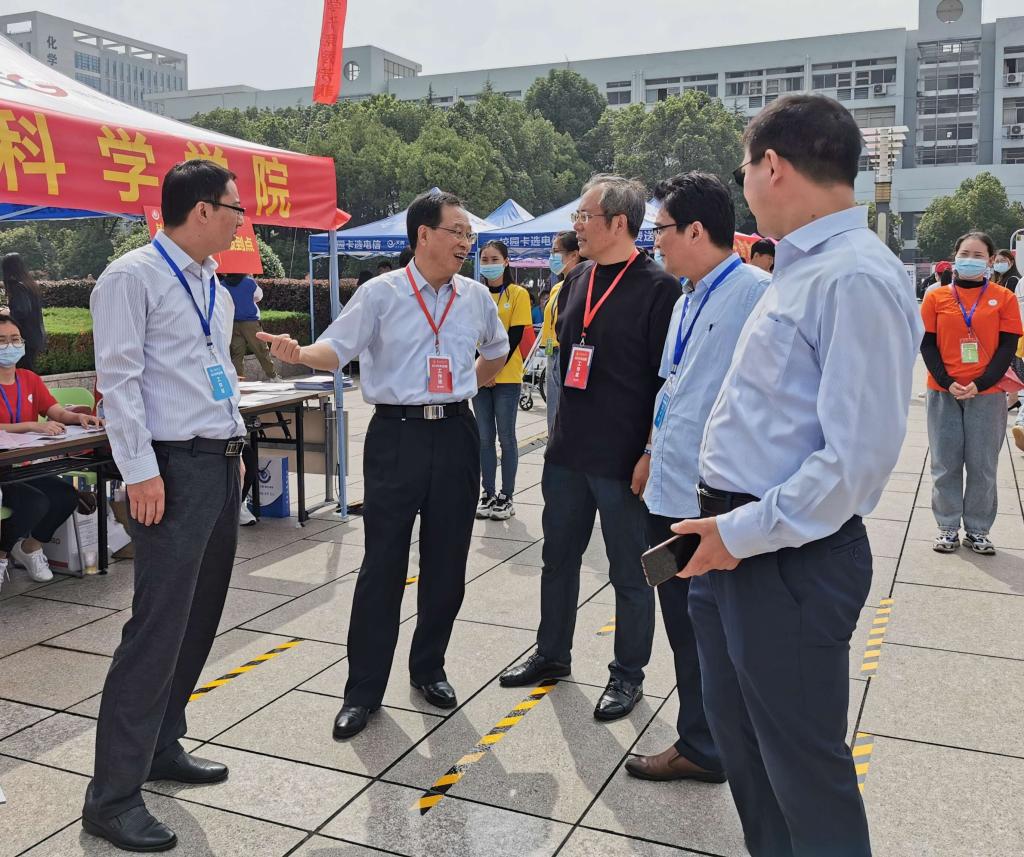 领导班子成员先后来到现场,慰问新生、新生家长和迎新志愿者,现场指导迎新工作。
