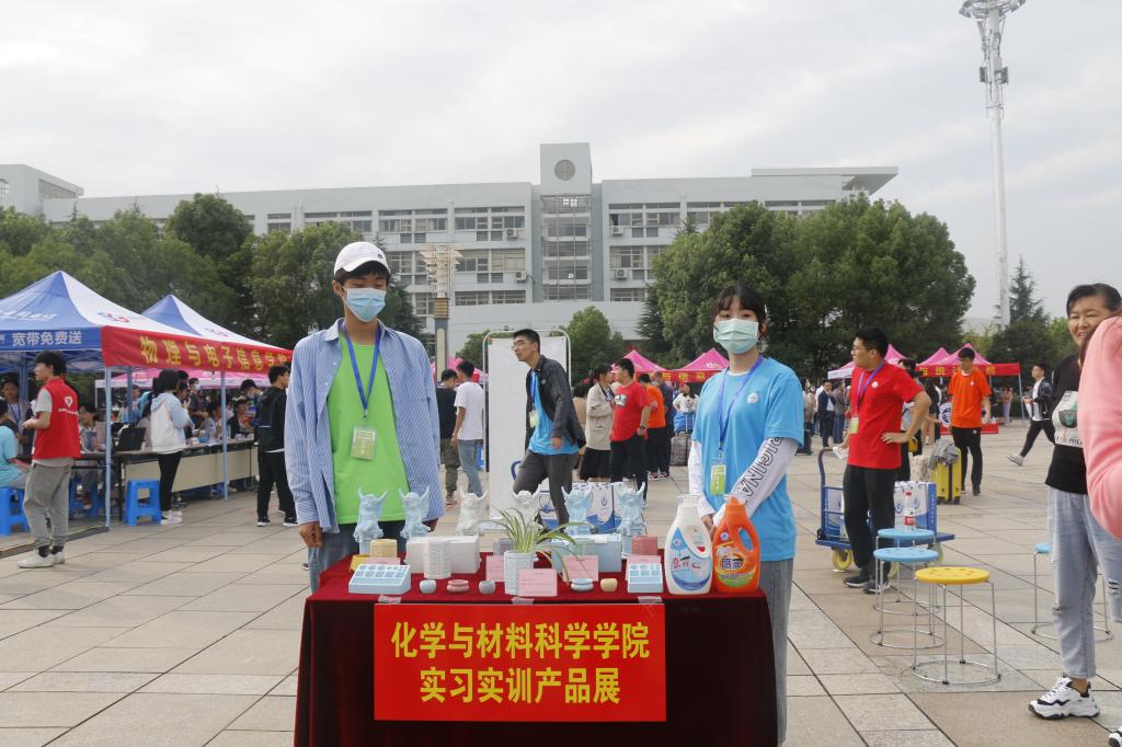 的17级学生在老师的指导下精心准备的环保笔筒、流香洗衣液、杯子等实训产品,展现出我院对2020级新生的殷切关怀。