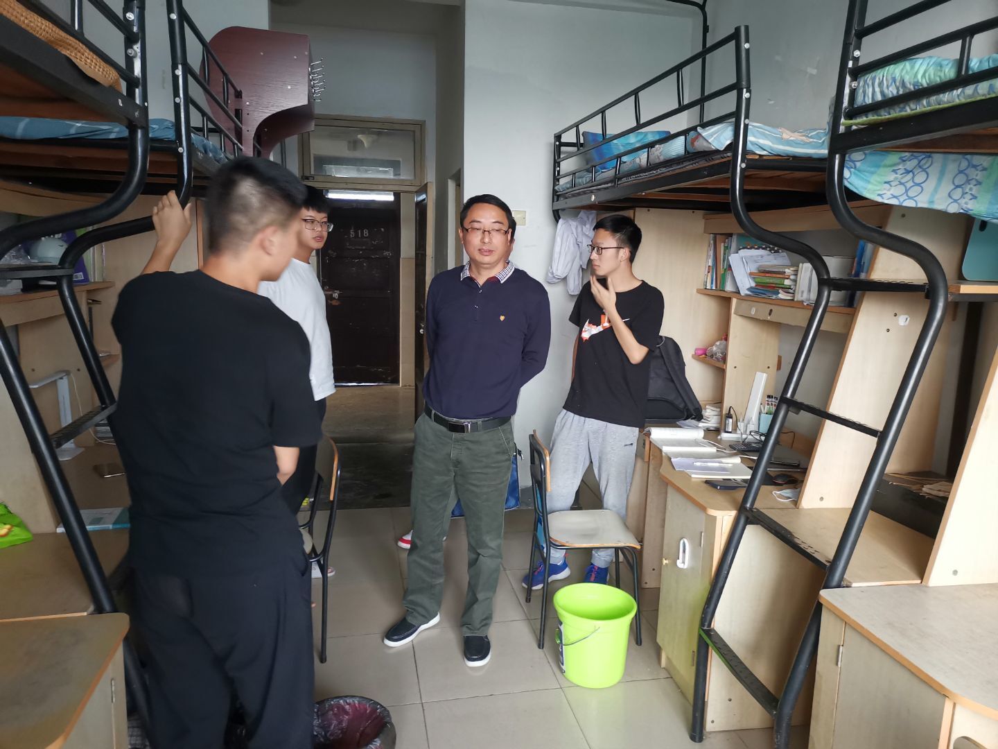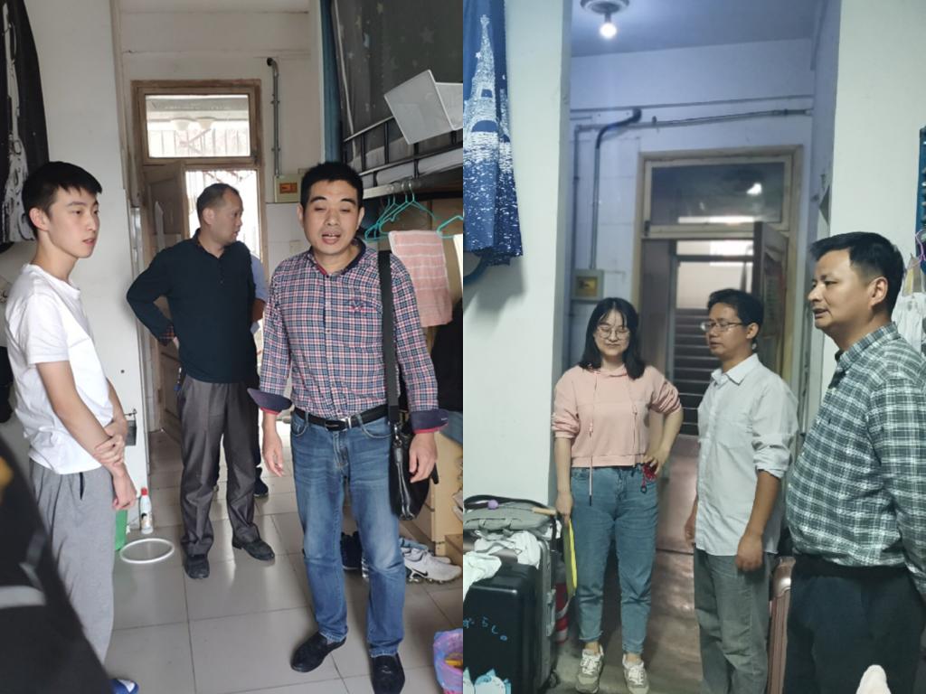党政领导班子成员及系主任带领全体专兼职辅导员分组深入全体学生宿舍,为学生送去新学期的暖心关怀。