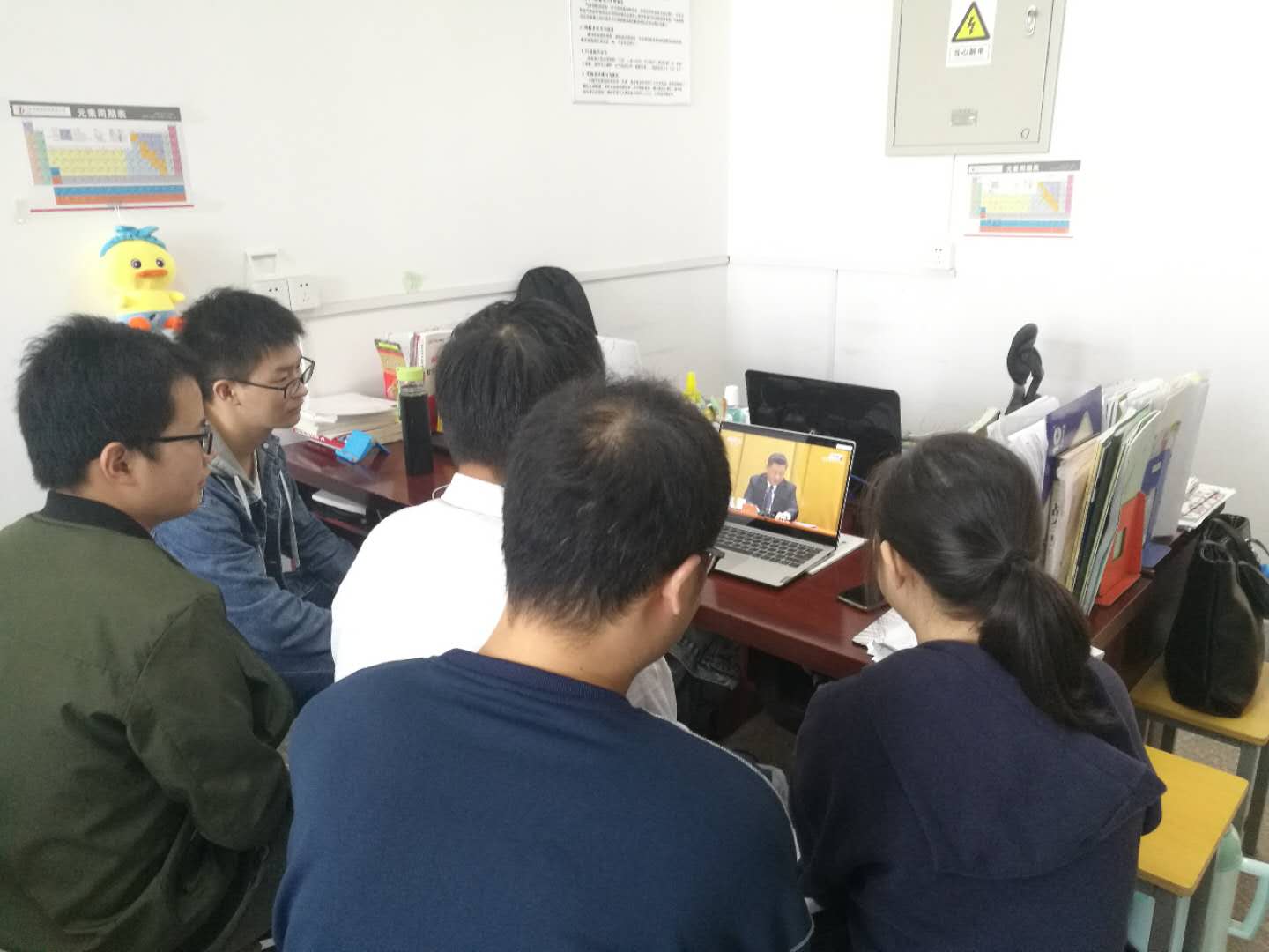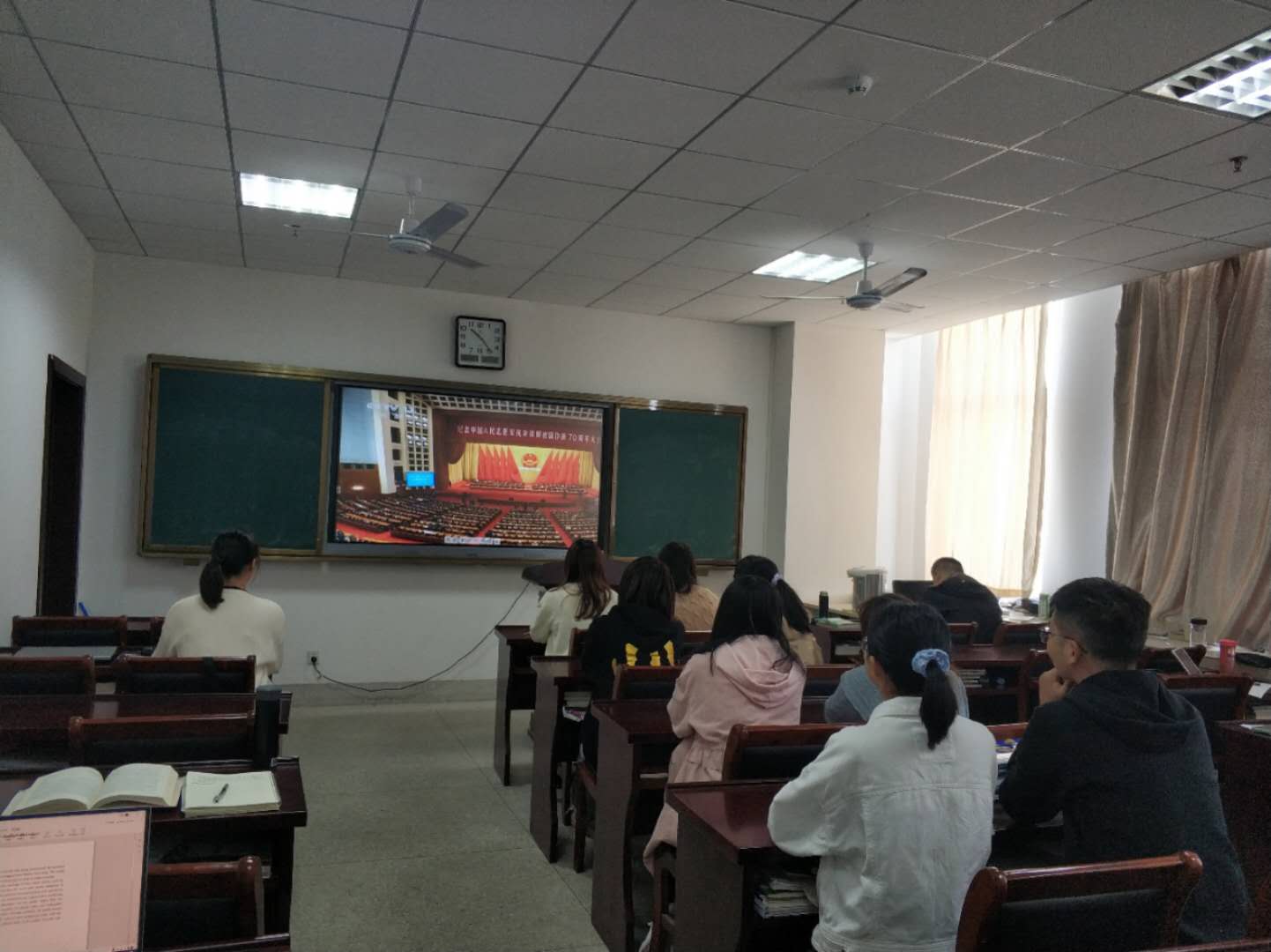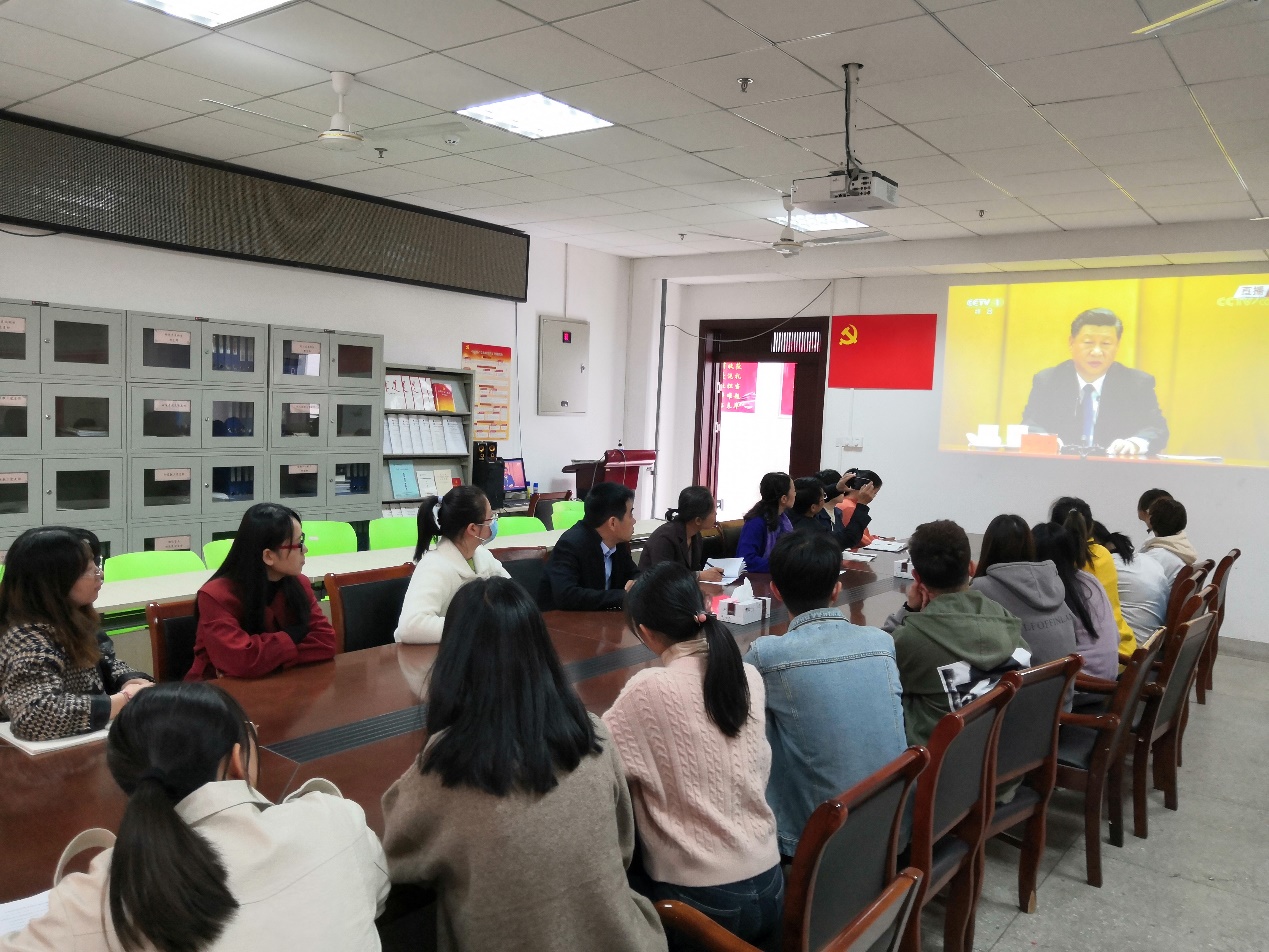 组织党委委员、教师代表、学生代表在707党员活动室集中收看了纪念中国人民志愿军抗美援朝出国作战70周年大会盛况。与此同时,各党支部通过电视、电脑、手机客户端等多种方式收听收看。