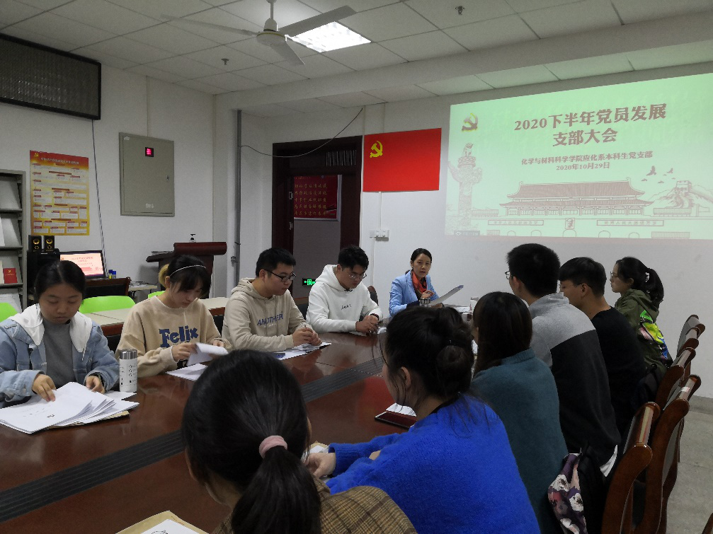 应用化学系本科生党支部于礼勤楼707党员活动室召开支部党员发展大会。大会由应用化学系本科生党支部书记陶勇主持,出席本次会议的有绿帽奴