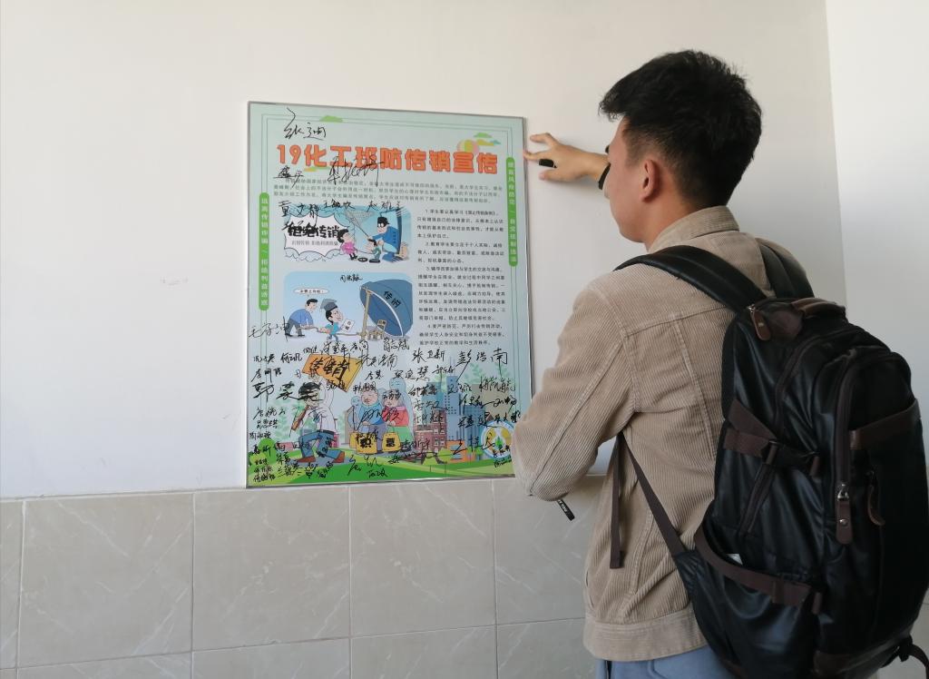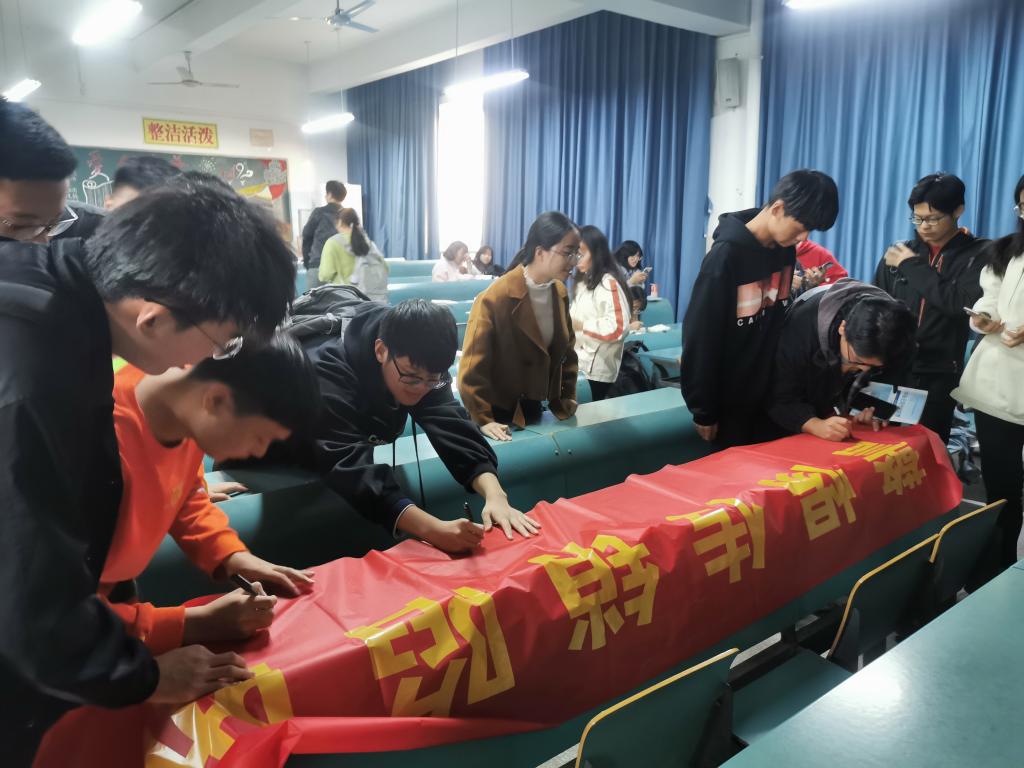 各年级、各班召开反传销主题班会。班会中,各班负责人带领班级同学学习反传销相关知识,结合自己身边的真人真事,为同学们讲解了传销的危害。同时从传销组织的运行特点着眼,介绍了传销的辨别与防范方法,并且为同学们讲述了进入传销组织后的自救实例,积极引导同学进行自我教育、自我管理、自我服务、自我监督,增强对传销的免疫力。会后,班级同学联名签署了《“净化校园,拒绝传销”承诺书》,承诺加强反传销防范意识,不参与、不宣传传销活动,对身边发生的传销活动做到及时发现、敢于揭发,共建和谐校园。