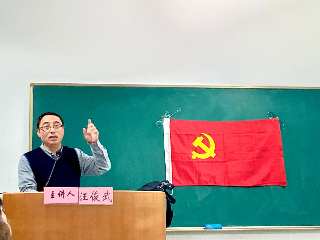 汪书记授课中着重强调了“人类命运共同体”概念,尤其是在今年新冠肺炎期间,愈发体现了人类命运共同体的价值与意义。在这样的特殊时期,每个国家都不能独善其身,国际社会应该多沟通,多交流,努力贯彻落实创新、协调、绿色、共享、开放的发展理念。最后,汪书记向我们提出要求,青年党员要增强“四个意识”,做到“四个合格”, 坚定理想信念,加强理论学习,投身积极实践,严格要求自己。