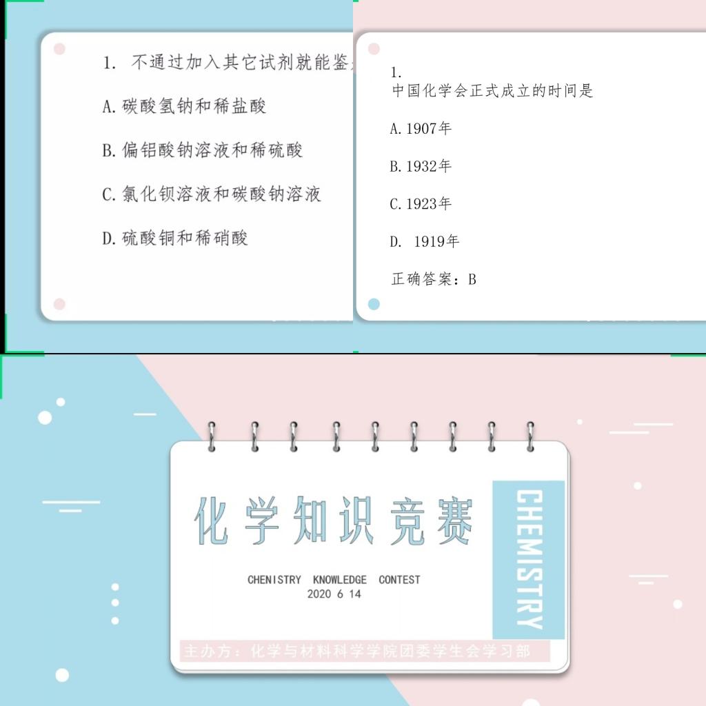 结合各专业特色,根据不同年级的需求,针对17级开展化学文献检索大赛、18级开展化学专业知识竞赛、19级开展“科普化材”化学科普知识竞赛。在各项活动中,参赛选手根据所学专业知识,进行精彩的演讲汇报和答辩,充分展现了专业技能。