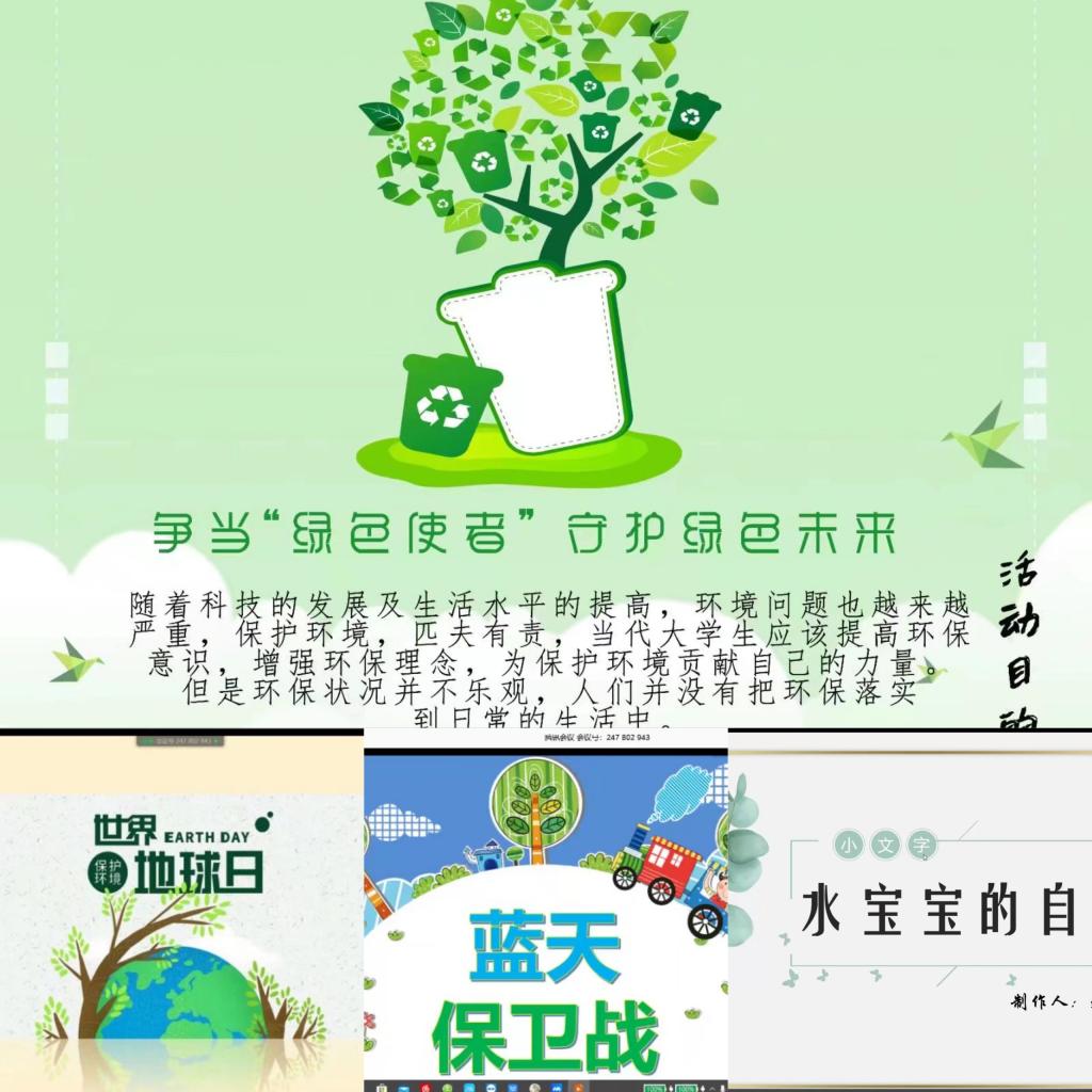 面对此次疫情“大考”,人们对可持续发展有了更加深刻的思考。环境保护协会适时开展“绿色使者”环保主题宣教大赛,采用创新的线上比赛方式方法让学生参与活动的积极性得到提高,并引导学生结合绿色宣教的形式制作环保主题PPT,带动绿色宣传,加强学生保护环境、构建绿色的环保理念,使可持续发展理念真正地深入人心。