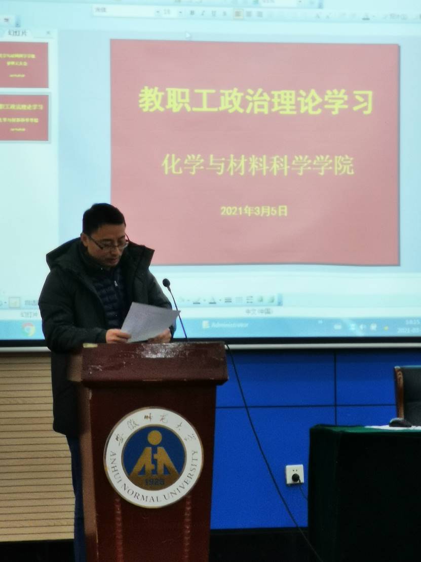 全体教职工集中收看了习近平总书记在党史学习教育动员大会上的重要讲话精神。汪俊武解读了李克强总理在第十三届全国人大第四次会议上做的《政府工作报告》,报告从去年工作回顾、“十四五”主要目标、今年主要目标等三个方面阐述了“十四五”规划目标和民生福祉,也指出了面临的困难和挑战。汪俊武要求全体教职工要高度关注全国两会的召开,通过电视、广播、报刊、网络等收看收听两会开闭幕会及政府工作报告等有关报道,自觉学习两会精神,把会议精神转化为强大的工作动力,在狠抓落实上见成效。