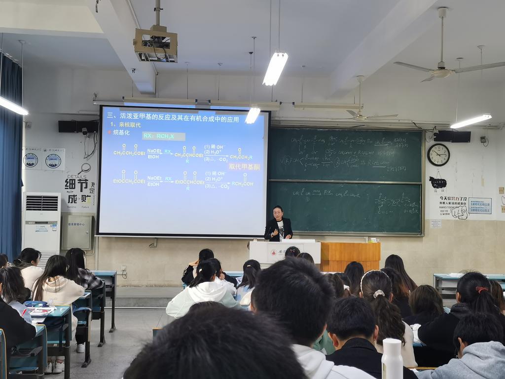 黄王昱昊)2021年4月16日上午第三节课,张丽军老师在2010302教室开展了《有机化学》公开课教学,为2020级化学类二班全体学生讲授“乙酰乙酸乙酯和丙二酸二乙酯在有机合成中的应用”内容,绿帽奴