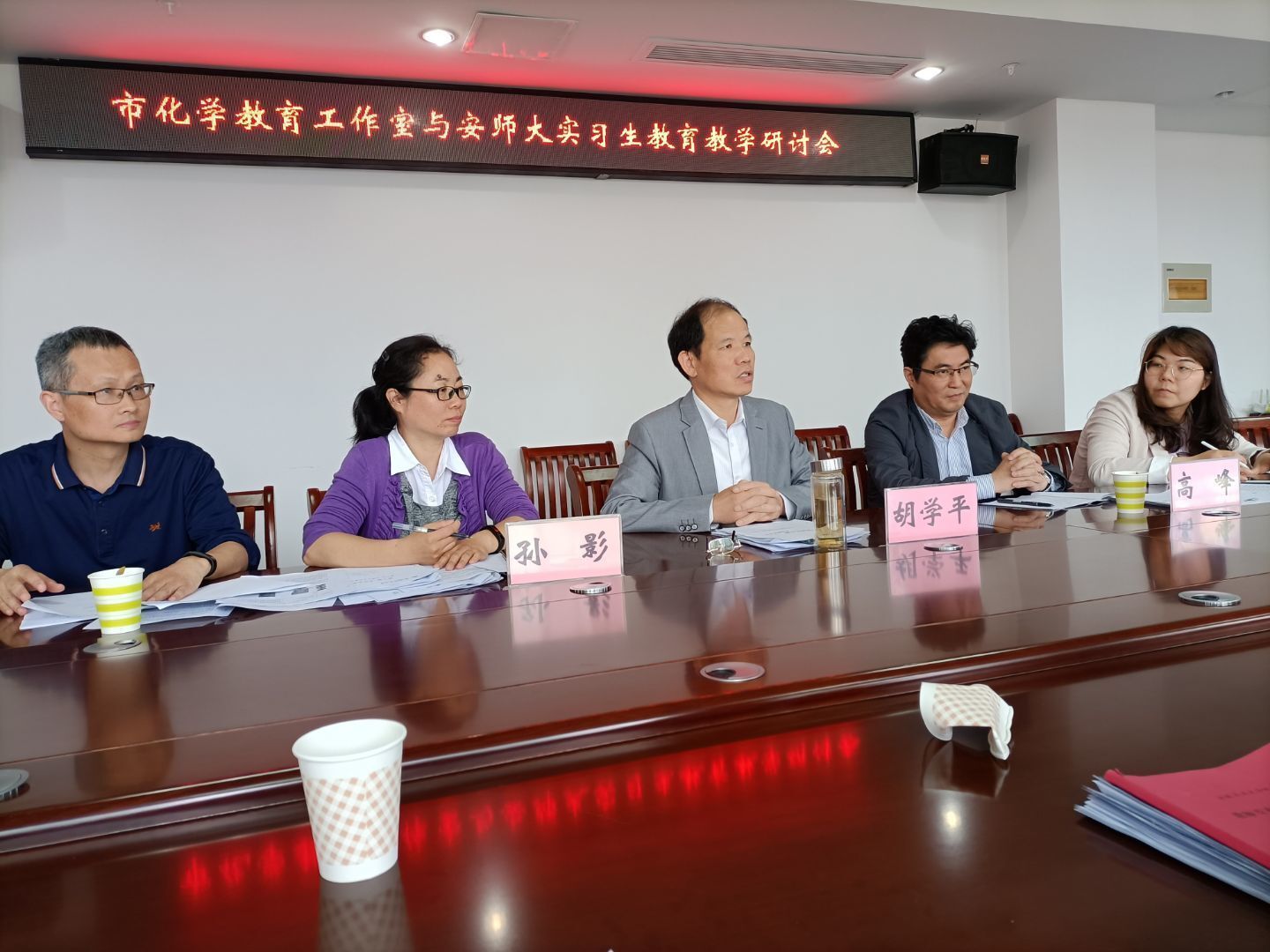 在观摩完中期展示活动后,马鞍市二十二中学校长胡学平正高级特级教师对到来的各位领导老师表示欢迎,随后介绍了指导老师团队是一支经验丰富的优秀团队,并详细介绍了学校的一些管理措施和已经取得的阶段性成果,表示实习生在实习工作中一定可以有所收获,并对实习生积极配合参与学校工作表示感谢,对绿帽奴