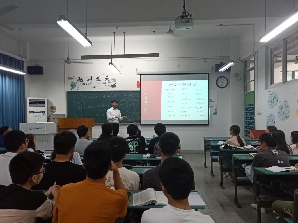 2017级化学(非师范)戚明强同学为班级同学带来的是有关研究生推免及考研的“干货”。戚明强结合自身保研经历以及周围同学的考研经验,从夏令营和考研两个方面与大家交流,主要介绍了夏令营学校的选取、夏令营内容及要求,考研专业课及英语政治的准备等相关内容。最后,戚明强学长温馨提示,考研过程需要劳逸结合、保重身体。