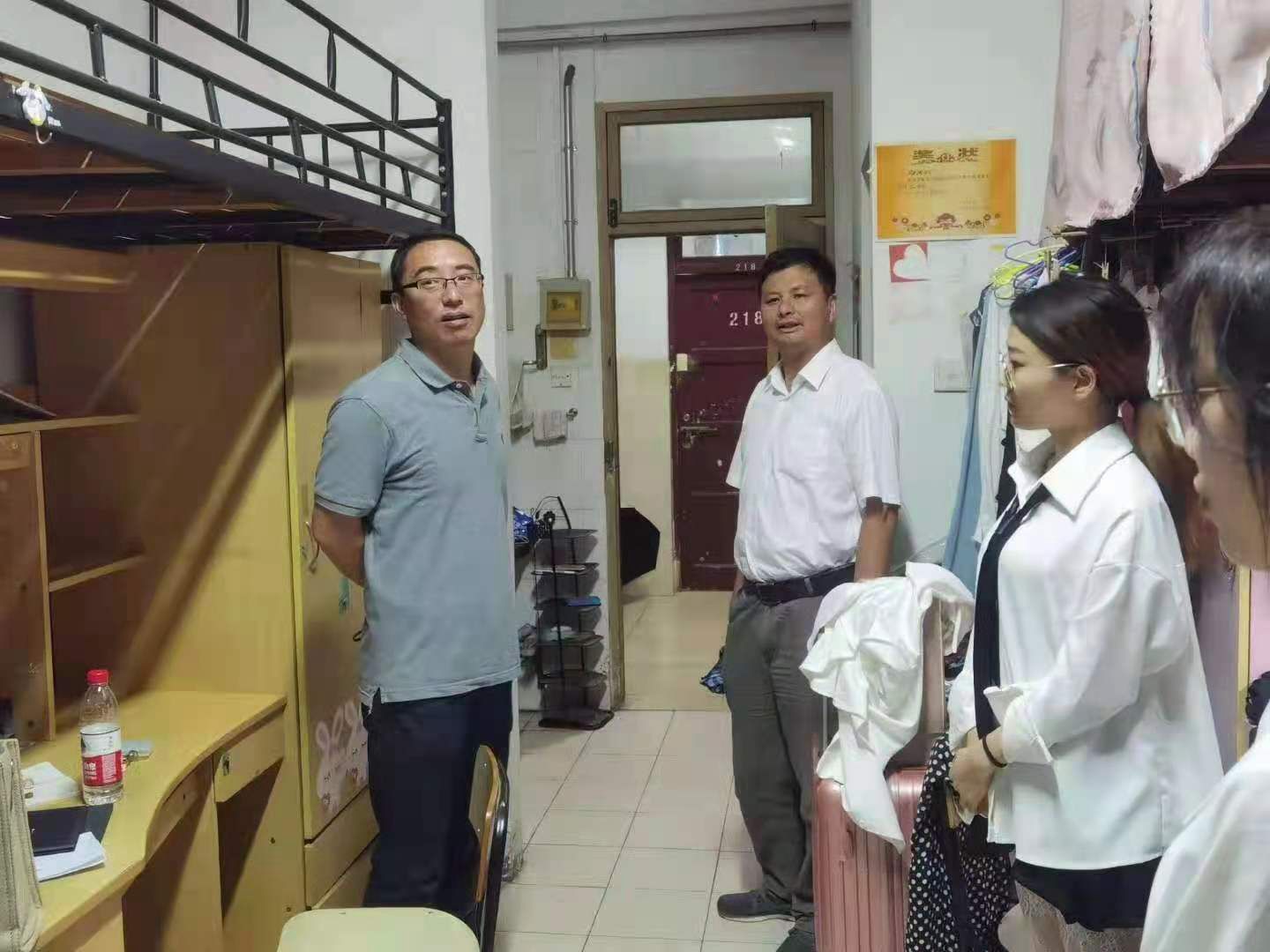 领导班子全体成员、各系主任、教师代表、毕业班辅导员逐间走进毕业生宿舍,与同学们暖心话别。老师们在走访过程中叮嘱大家离校前要做好个人防护工作,并注意宿舍用水用电安全,排除离校安全隐患,毕业生同学在离校时,主动清扫寝室和走道,营造文明离校氛围。