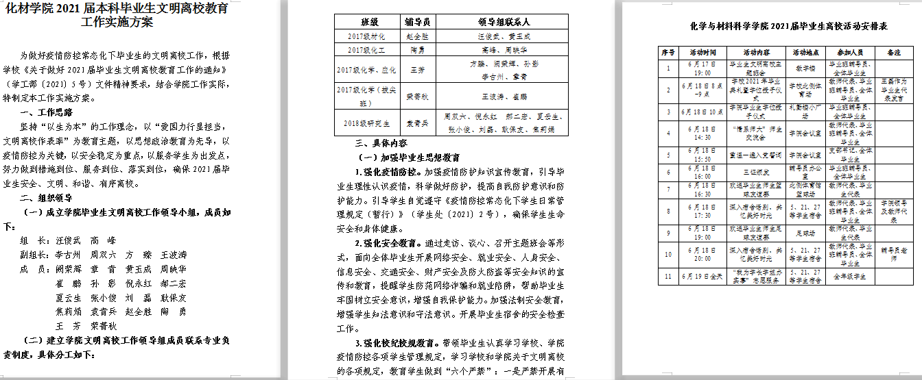 以思想政治教育为先导,以疫情防控为关键,以安全稳定为重点,以服务学生为出发点,努力做到措施到位、服务到位、落实到位,通过制定“十个一”毕业生文明离校工作方案、多次召开毕业生文明离校专题工作布置会,将毕业生离校工作落到细处、实处。