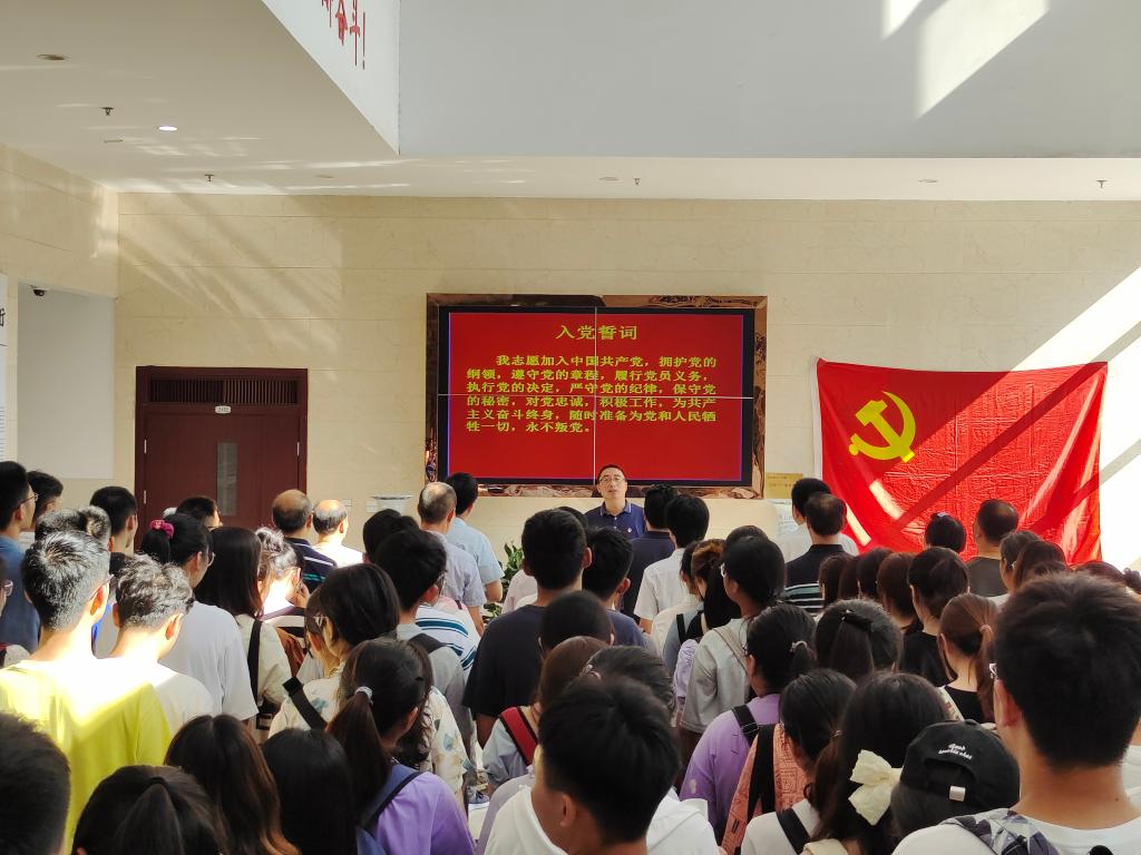 党委《关于批准杨婉妮等84位同志为中共预备党员的批复》,并对他们加入党组织表示祝贺。老党员给新发展的党员颁发了《中国共产党章程》和党费证,并佩戴党员徽章。随后,全体党员握拳过肩,面向鲜红的党旗,在领誓人的带领下,庄严宣誓。党员们情绪饱满,字字铿锵,在激昂的宣誓声中,每位党员都接受了一次深刻的思想洗礼,进一步强化了对党忠诚、全心全意为人民服务的使命意识。