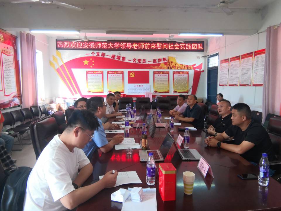 “皖象更新·脱‘颍’而出”主题调研团队进行慰问,并同袁集镇党委书记李永启、镇长韩德生、党委副书记孙影、党委副书记李昊、副镇长徐若阳开展座谈交流。队长沙凝从探研脱贫成果、感受精神文明、“知民生·办实事”三个方面汇报了实践活动开展情况,安全员陈晨和宣传员王林新分别介绍了团队安全保障情况及宣传工作情。