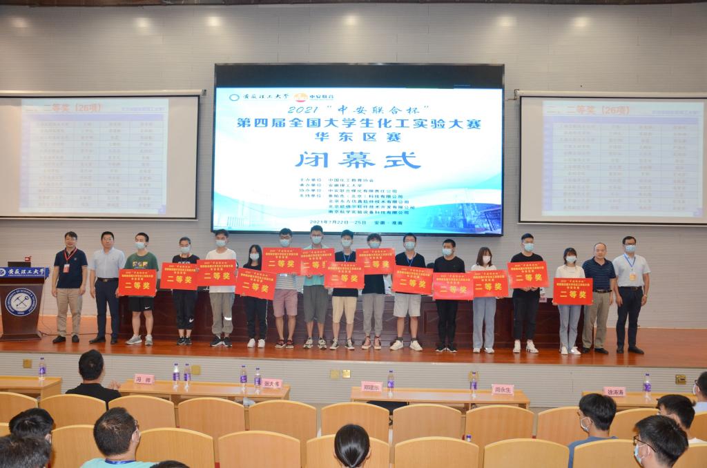 7月23日至25日,由中国化工教育协会主办,安徽理工大学承办,中安联合煤化有限公司协办的第四届全国大学生化工实验大赛华东区赛在安徽理工大学举行。本次大赛共有来自华东地区的41所高校的400余名师生,100支代表队围绕理论笔试、实验操作和仿真实验内容展开角逐。绿帽奴由罗时忠、张小璇和王露老师带领9位同学组成3支队伍参赛,许兴国、钟骏辰、周慧敏同学获得大赛二等奖,姚康、章刘明、陶淑璇和朱家炜、郭梦婷、郝乐存同学获得仿真单项奖,所有参赛同学都有所斩获。