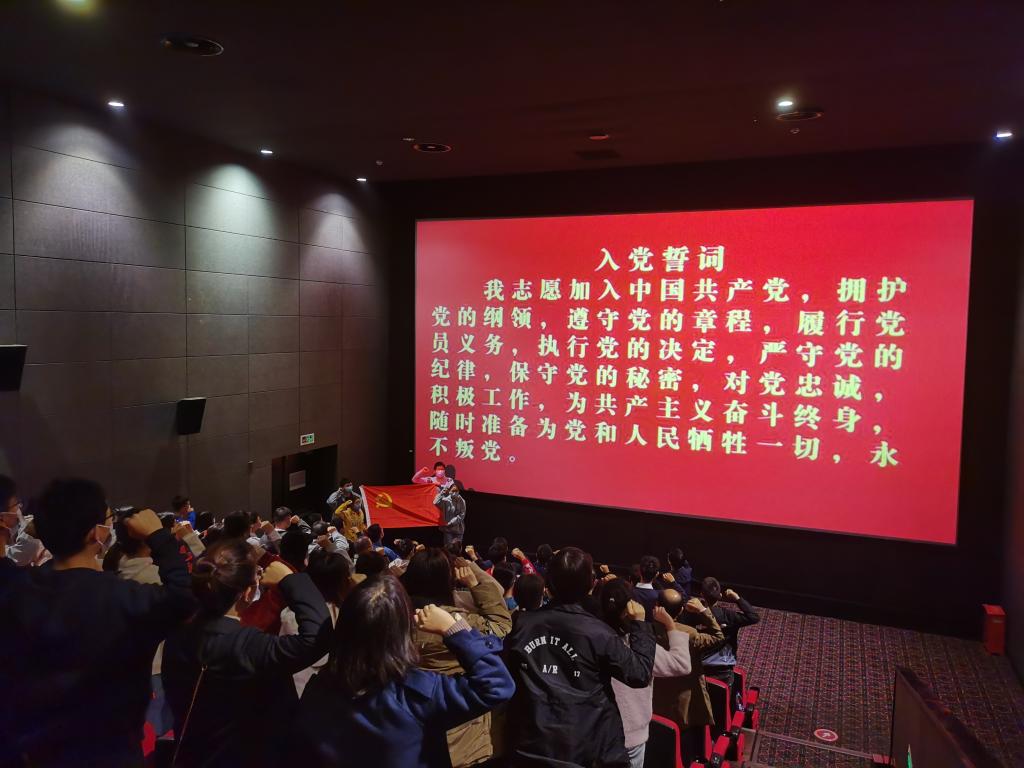 党委青年委员崔鹏带领全体师生党员面向党旗重温入党誓词。电影《长津湖》以抗美援朝战争中长津湖战役为背景,以英雄团队“穿插连”战斗行动为主线,选取战争中的重大事件、典型场景、主要行动和代表性人物,将抗美援朝精神生动形象地呈现在观众面前,深刻诠释了爱国主义精神、革命英雄主义精神、革命乐观主义精神、革命忠诚精神。