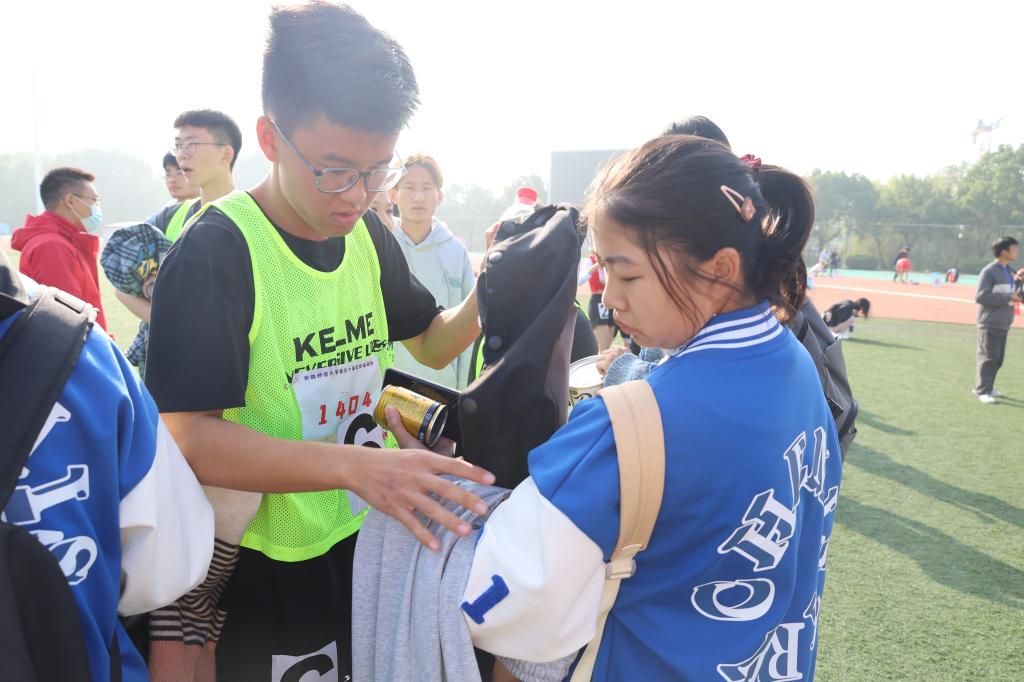运动员在赛场上的精彩表现,离不开幕后工作人员的细心服务和鼎力支持,为使运动员们全心全意参与比赛,院团委、学生会全体成员全心全意做好幕后服务工作,继续实行一对一帮扶运动员制度,包括赛前提醒,赛时陪跑,物品保管、赛后送水等工作,志愿者们踊跃报名,为秋运献出自己的一份力量。运动会期间,运动员在赛场上奋力拼搏,志愿者在幕后全力保障,拉拉队和观众在看台上呐喊助威,全院上下团结一心,展现出了强大的凝聚力和集体意识。