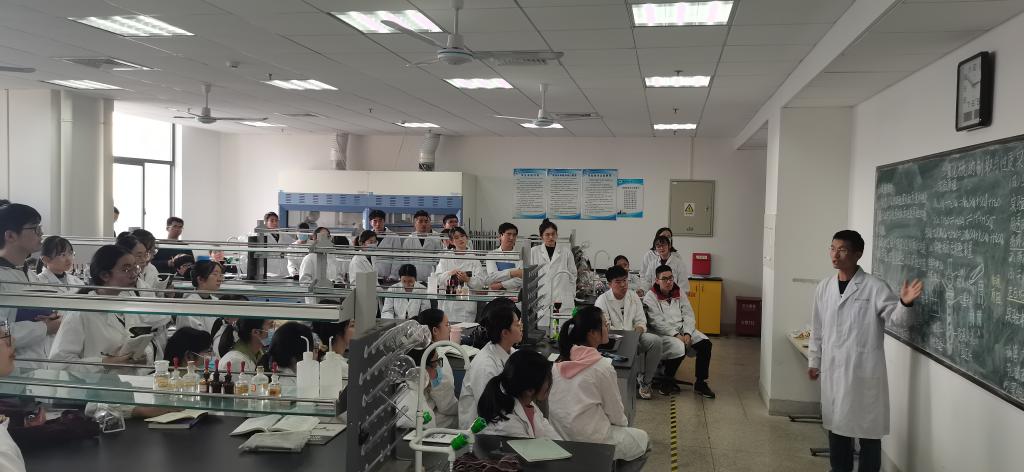 本科生周昱晨首先详细讲解了二氧化硫的制取、性质检验原理、实验装置与实验步骤,随后,阙老师对周昱晨同学的讲解进行点评与补充,提出了一些有利于同学们参考的讲解建议。此外,阙老师对本次的一体化创新实验装置进行了更加详细的讲解,引导同学们从实验仪器选取、气体检验步骤等角度理解与思考。同学们对本次实验有着很大的兴趣,认真聆听讲解,积极与老师互动。