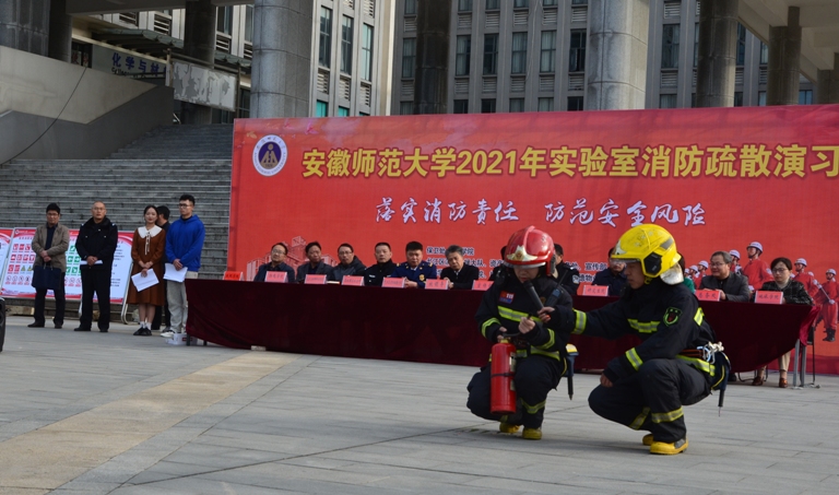 部分师生代表观摩演习,此外弋江区消防救援大队、高校园区派出所、明德物业、长源消防公司等单位安排人员参加演习。