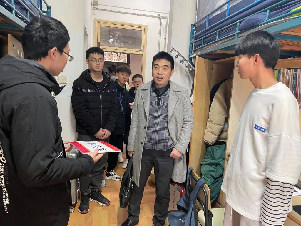党委领导班子、专兼职辅导员深入学生宿舍,排查学生宿舍安全隐患,走访宿舍过程中,老师们提醒学生要守住安全底线,牢记学生身份,共同打造安全寝室、书香寝室、文明寝室。