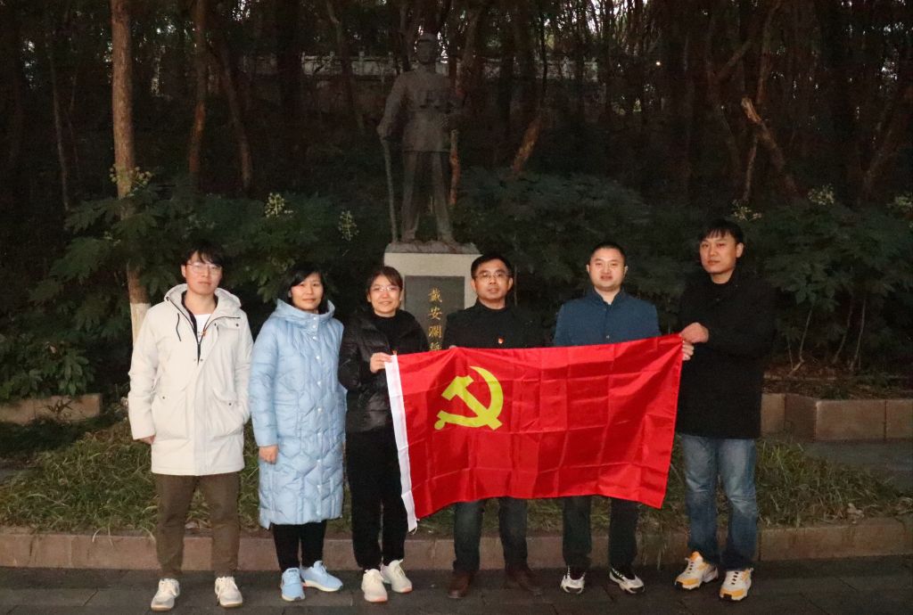 12月17日下午,支部与化工系联合开展支部红色教育实践活动暨全体教师交流活动,祭扫戴安澜将军墓。大家认真阅读墓碑上的文字和毛主席撰写的挽词,深入了解了戴安澜将军的不平凡一生,深刻体会到革命先烈的奉献精神。张小璇书记代表党支部,向戴安澜将军雕像献上鲜花,大家肃穆鞠躬,表达敬意。通过本次活动,全体人员重温历史、缅怀先烈,接受了一次深刻的党性教育和精神洗礼。党员同志纷纷表示,要以革命先辈为榜样,发扬革命优良传统,传承红色基因,赓续红色血脉,扎实推进我系专业建设和人才培养等中心工作。
