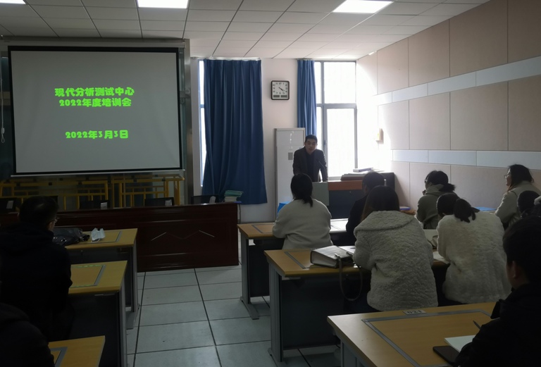 行政副院长王波涛、测试中心全体教师、2021级全体研究生和2021年入职教师参加了培训会,会议由赵全胜主持。