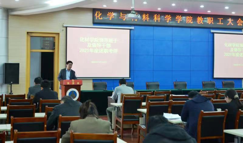 领导班子和领导人员进行2021年度工作述职,全体教职工对领导班子和领导人员进行了民主测评、评议。其他分管领导通报了近期相关工作,布置了下一阶段的重点工作。