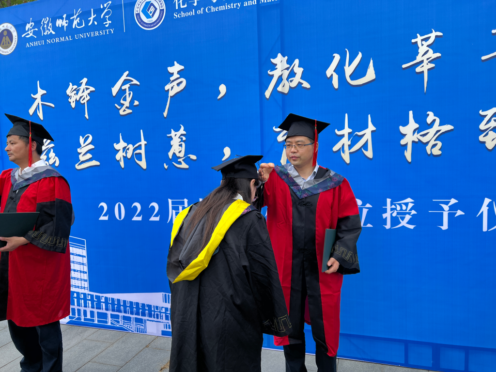 2022届毕业生毕业典礼暨学位授予仪式在礼勤楼广场前举行。500余名毕业生身着学士服和硕士服,带着激动和喜悦的心情共赴盛典。为了给学生满满的仪式感,学校党委高度重视,院长高峰,副院长方臻、周双六,教授委员会副主任倪永红等多位老师亲临现场,为毕业生逐一拨穗正冠,学子们与导师握手、道谢,合影留念。从初入师大时的微凉初秋,到即将离港起航的炎炎盛夏,千百个日日夜夜的学海奋斗都凝结在流苏被拨至左前方的一瞬间,成为毕业生们未来征程的珍贵行囊。