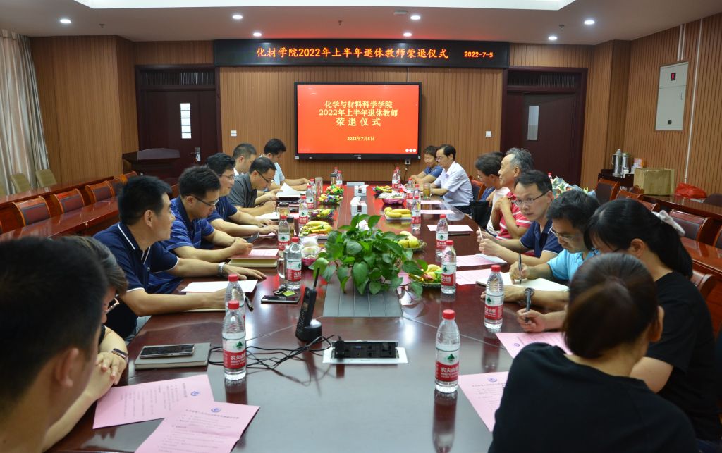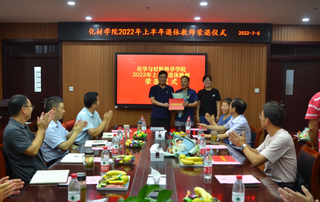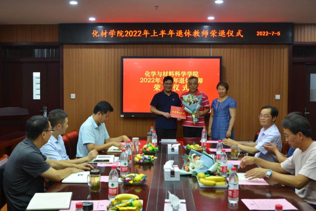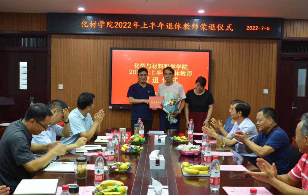 在礼勤楼702会议室举行2022年上半年退休教师荣退仪式,欢送朱昌青、叶寅、盛恩宏三位退休教师,绿帽奴