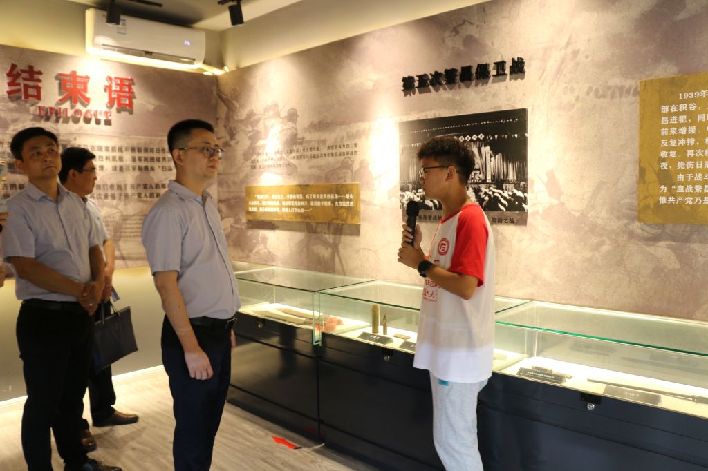 在蒋建伟的带领下,熊宇杰一行参观了中分村新四军第三支队司令部旧址纪念馆、繁昌保卫战展示馆等红色教育基地。暑期社会实践学生化身“红色先锋”讲解员,向前来慰问的领导老师生动地讲述繁昌保卫战和“英雄三姐妹,热血洒繁昌”的革命故事,并赠送了团队成员设计制作的“红色中分”明信片。