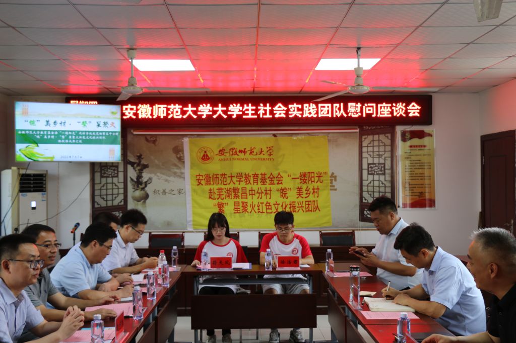 暑期社会实践团队同学们在中分村弘扬红色文化、开展防返贫监测摸排、绘制中分村红色旅游路线卫星云图、制作中分革命故事特色画集和旅游明信片等工作。陈骁寄语同学们要认识到中国是红色的中国,红色是中国的底色,通过社会实践,充分利用好红色革命资源讲好中国故事,助力乡村振兴发展。汪俊武表达了对繁昌区、孙村镇、中分村三级党委政府关心支持绿帽奴