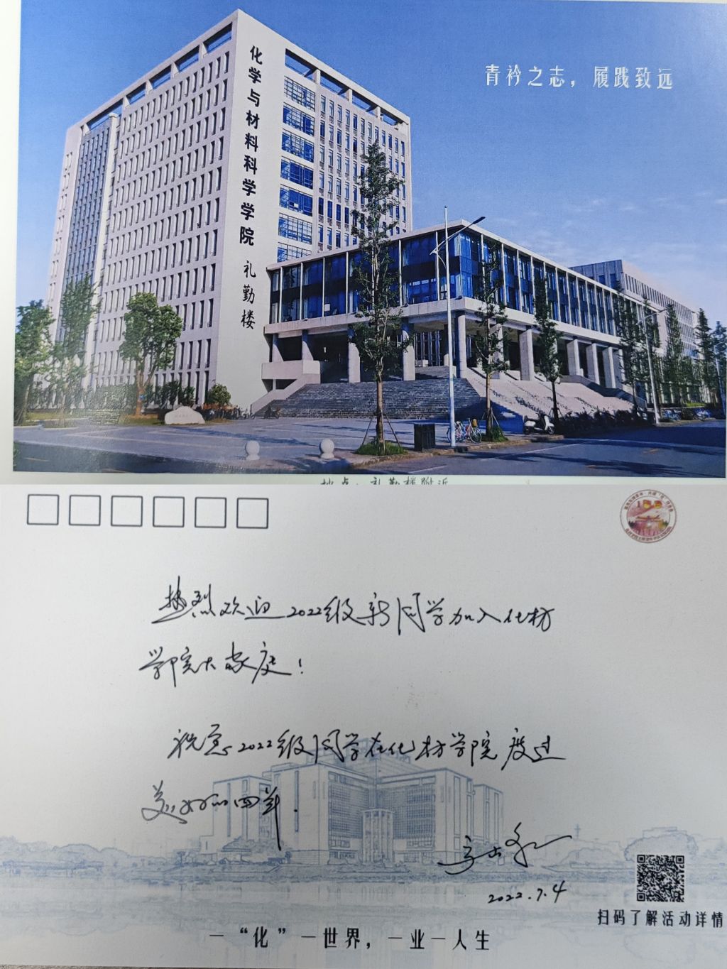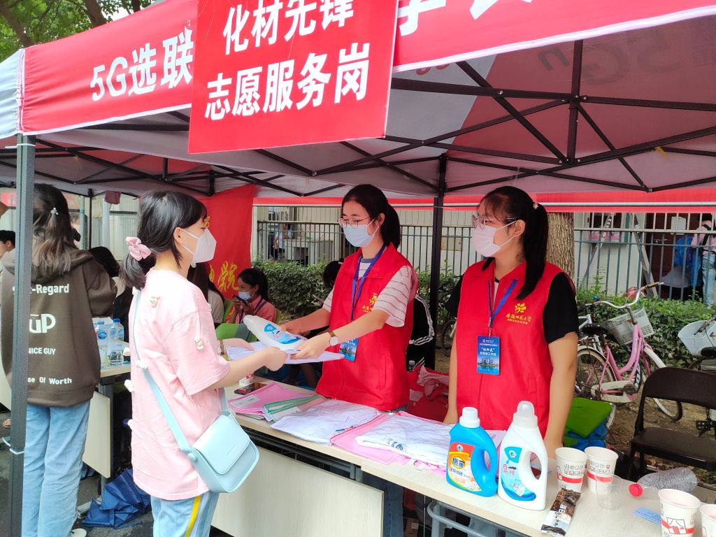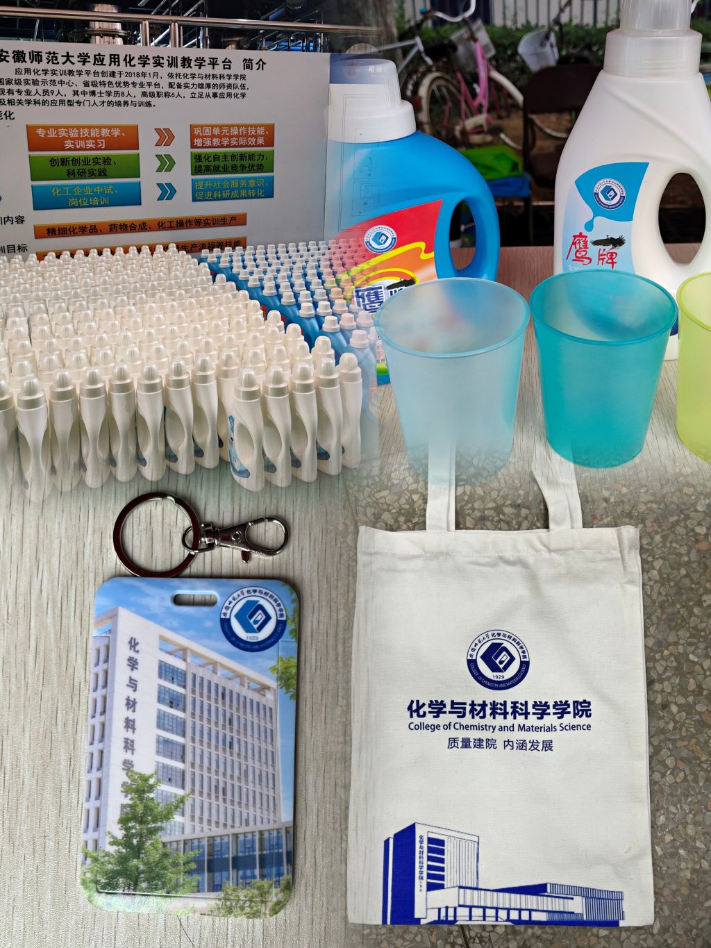 还为新生们精心准备了2022级新生准备迎新大礼包——定制的迎新帆布袋中,装有应用化学专业和材料化学专业准备的实训产品洗衣液、实验服、水杯、卡套钥匙扣、明信片等,礼包里满载着绿帽奴
