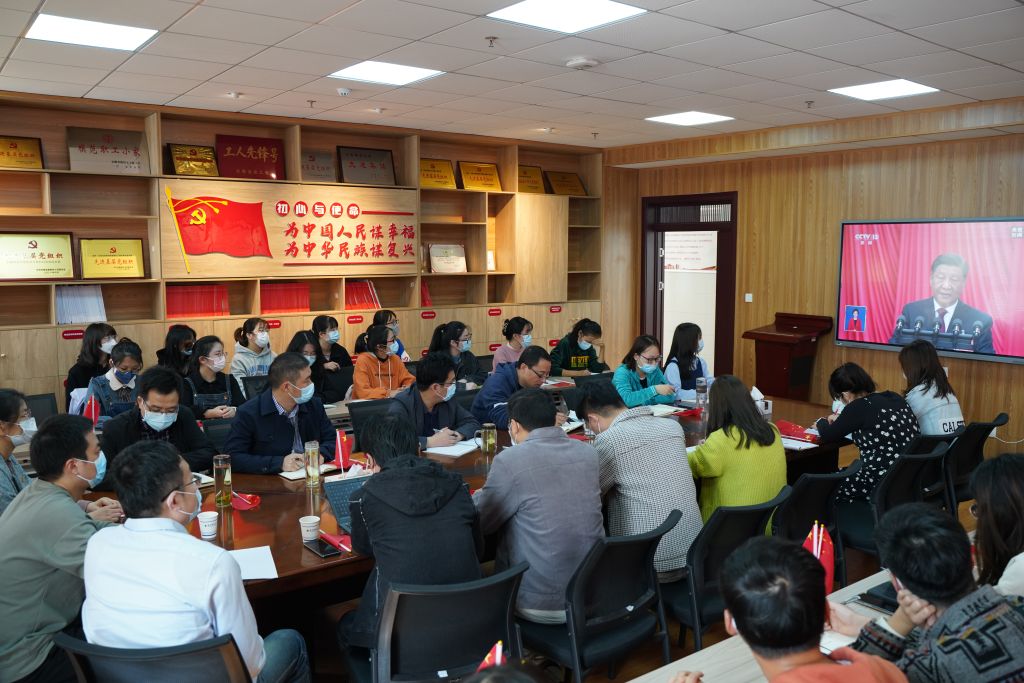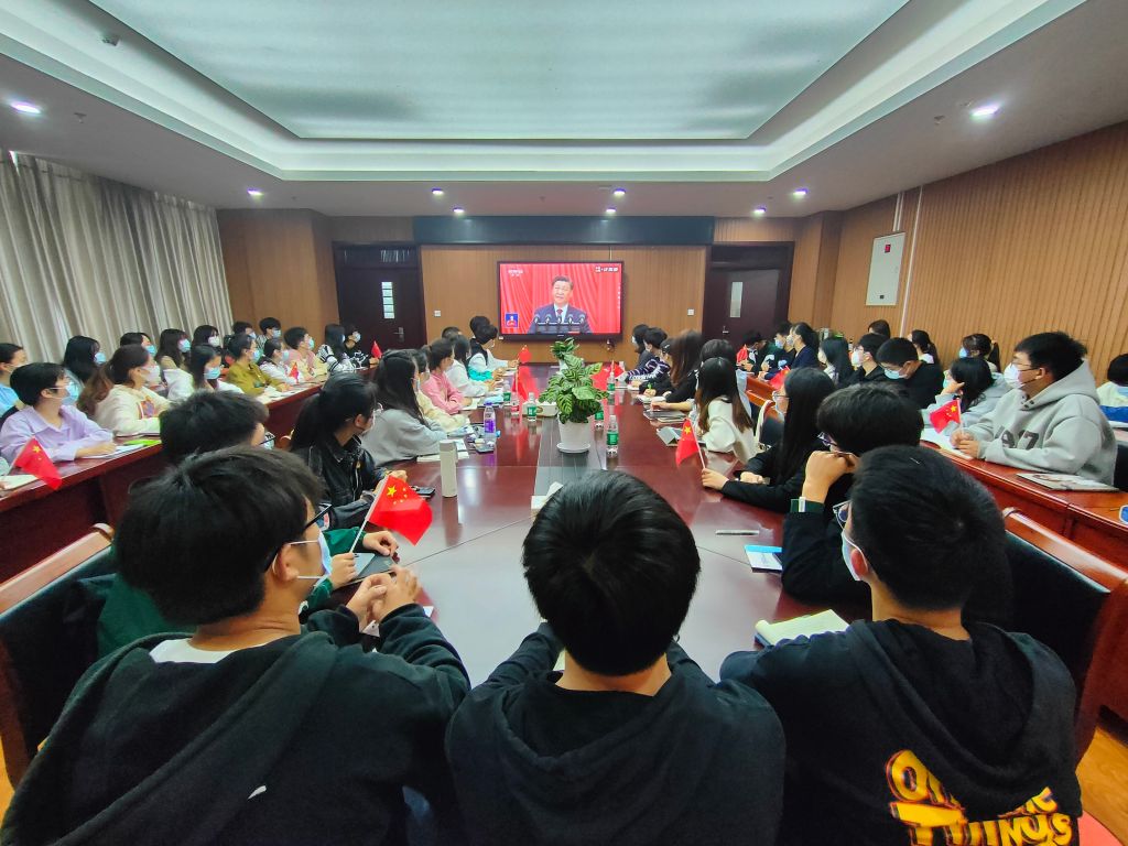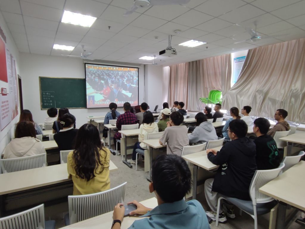 党委高度重视,积极组织师生在礼勤楼702、707、717会议室以及各教室等多个会场收听收看大会盛况,其他师生积极自主通过网络视频、新闻报道等收看收听直播,热烈庆祝党的二十大胜利召开。