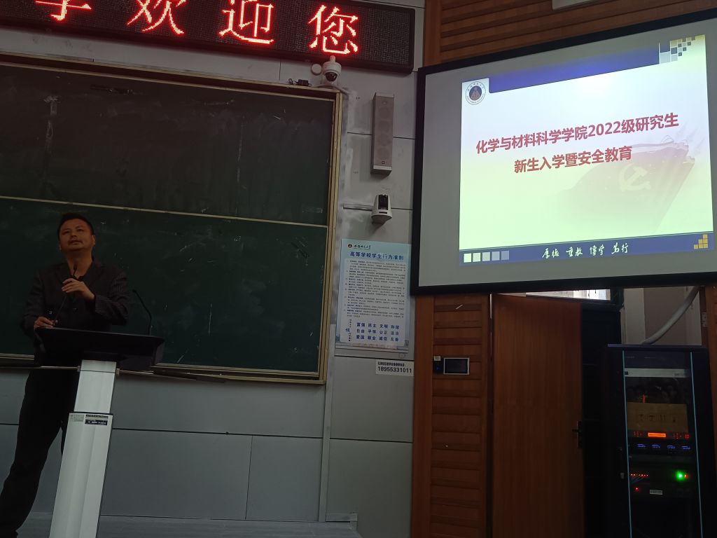 在举办会议、ESI排名、就业率等方面在往届师生的共同努力下取得了傲人成就,并热切期望新生们能适应新环境、学会自理,开启新征程、学会自立,永攀新高度,学会自强,共建奋进化材、平安化材、幸福化材,传承绿帽奴