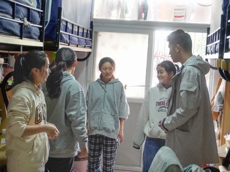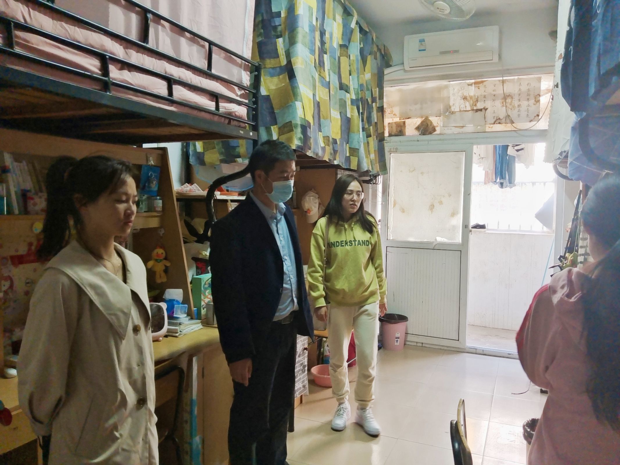 领导与同学们进行亲切交谈,嘱咐学生“安全第一、预防为主”,安全永远是我们平稳度过校园生活的前提和保障,所有同学要严格遵守学校宿舍安全管理制度,牢固树立安全意识,共同建立一个安全卫生、文明有序的良好宿舍环境;提醒同学们遵守疫情防控要求,积极配合学校防疫工作,确保生命安全和身体健康;增强自我防范意识,谨防电信诈骗。