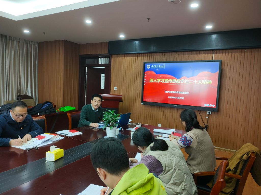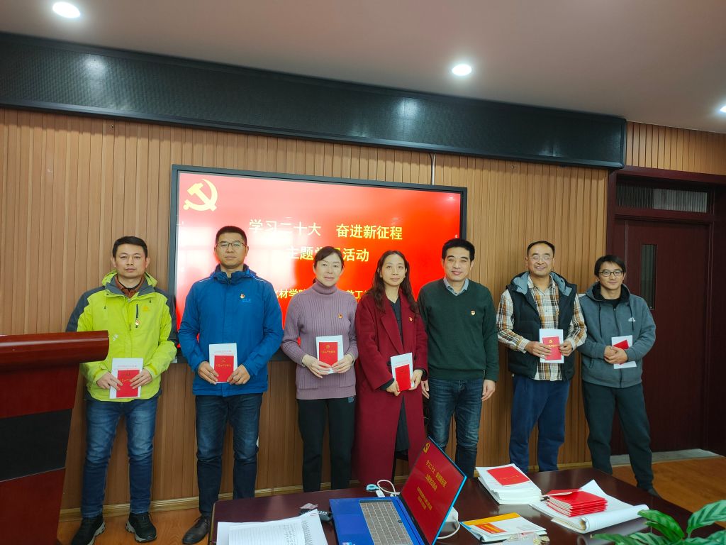 学习宣传贯彻党的二十大精神实施方案》作了重点解读。接着,王波涛、唐业仓给党员同志发放《党的二十大报告》和《中国共产党章程》学习材料。根据上级党委的学习要求,实验中心党支部将创新学习形式,计划在支部中开展“党员共读二十大报告”活动, 每位党员先自学二十大报告中的一个部分(共15部分),再结合学习内容和个人工作实际,集中交流研讨、汇报学习心得。